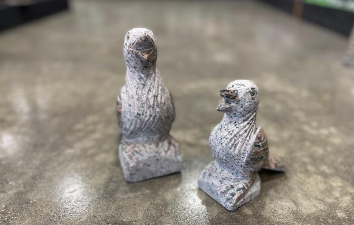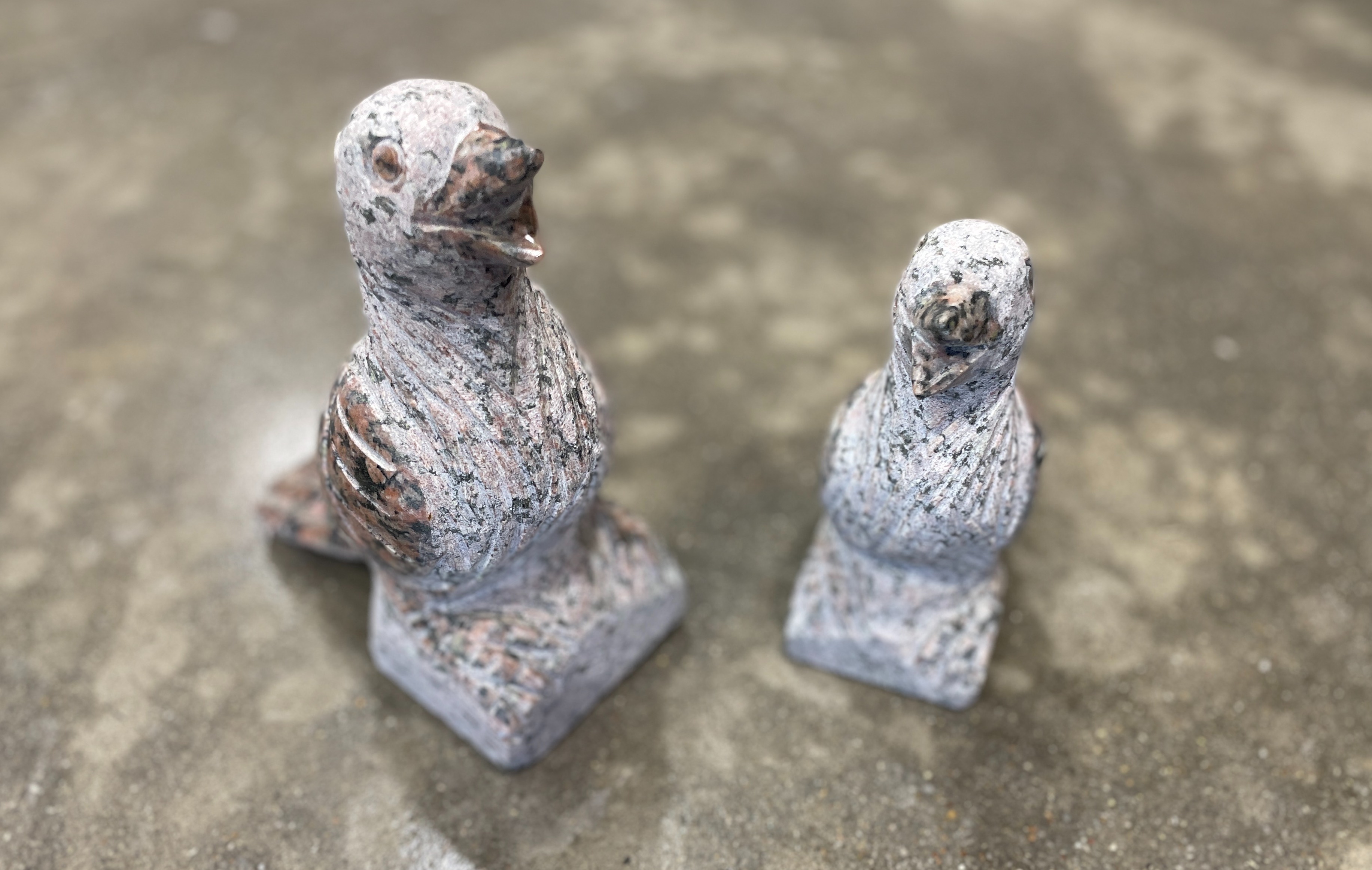 Fugl på sokkel, som står oprejst somom fuglen synger en sang. Fuglen har perfekt størrelse til at stå i haven ved fuglebadet eller i et bed, men passer også indenfor på en hylde eller lignende. Den syngende fugl fås i 2 størrelser - højde 15 eller 18 cm. Fuglene er produceret i rød granit med polerede vinger og næb.