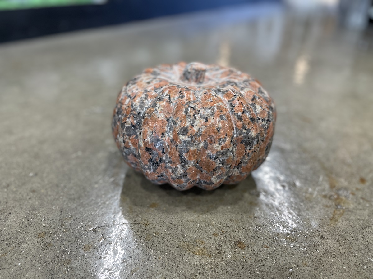 Dette polerede græskar i den røde granit er et sjovt element ind i alle hjem. Fungerer både som pynt og som samtalestarter når folk får øje på denne solide skønhed.