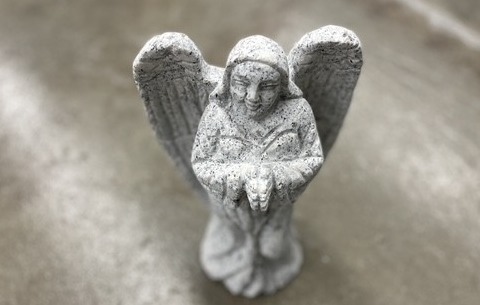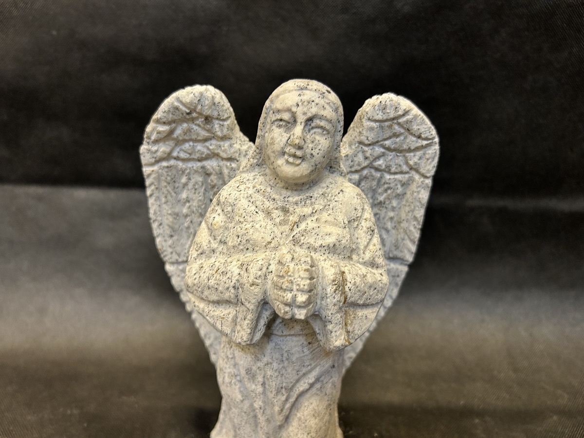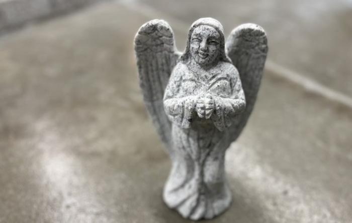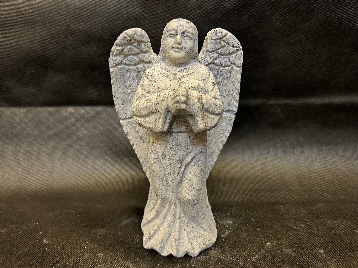 Lille engel i lysgrå granit. Den lille fine engel kan stå som skytsengel i hjemmet eller på kirkegården.