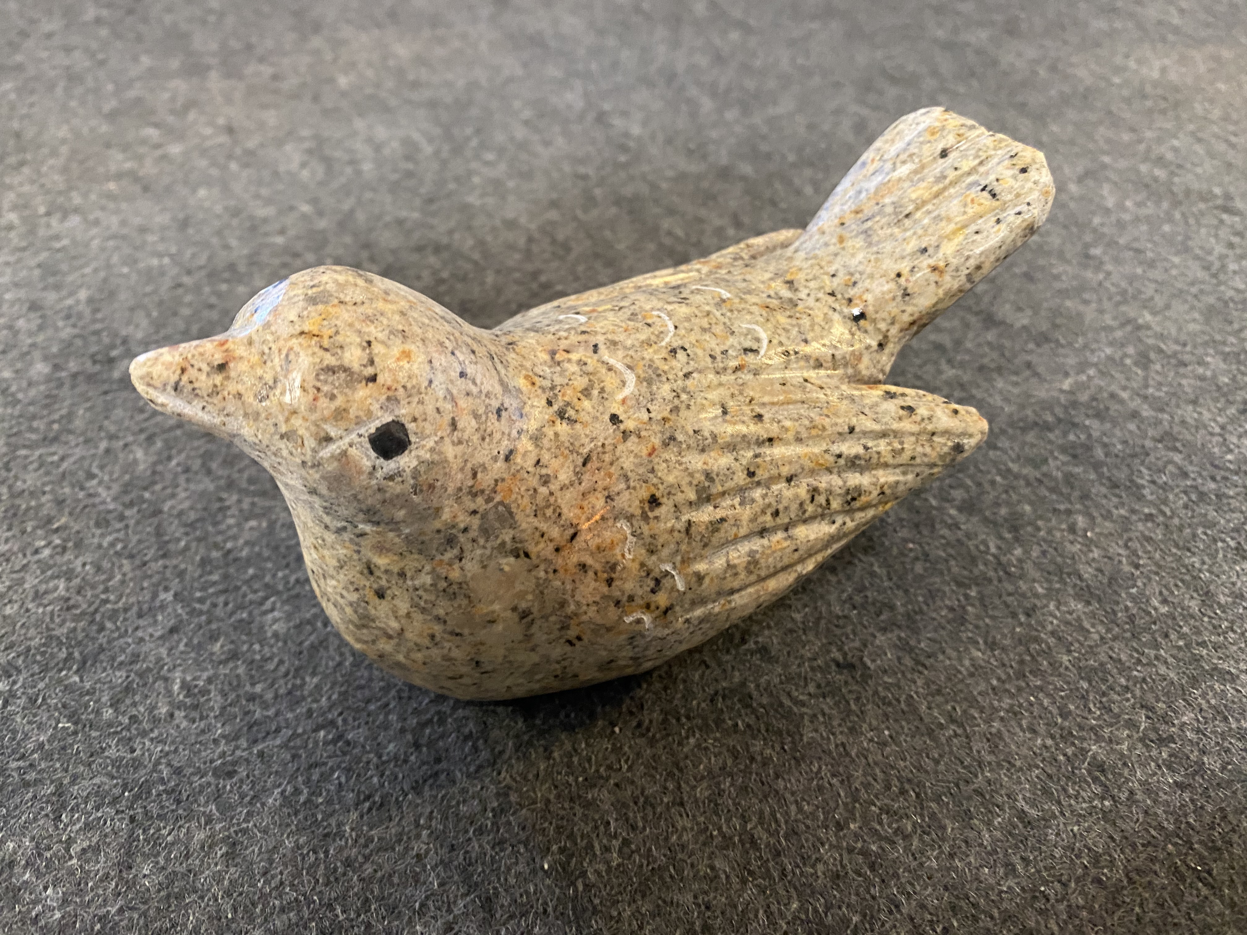 Lille fugl i gul granit fås i 2 størrelser - længde 10 cm eller længde 15 cm. Poduceret i gullig granit med poleret glat overflade.
