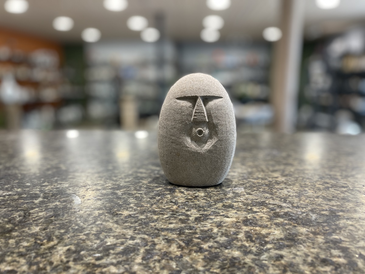 Ansigterne er lavet i granit og har varierende form, som ville passe godt ind på hylden eller i vindueskarmen.