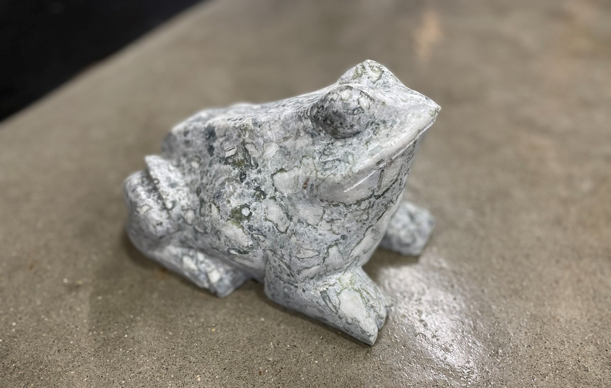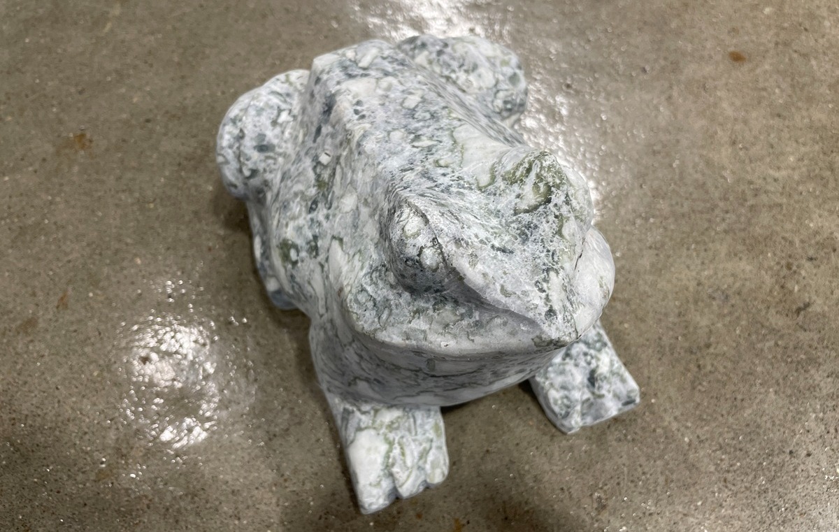 Lille frø eller tudse i grøn/grålig mamor. Frøen hverken hopper eller kvækker i haven, men sidder stille og observere sine omgivelser. Frøen passer perfekt ved havedammen eller i et bed. Marmoren bliver lidt mere tydelig i farven når den bliver våd, men farvespillet forbliver det samme.