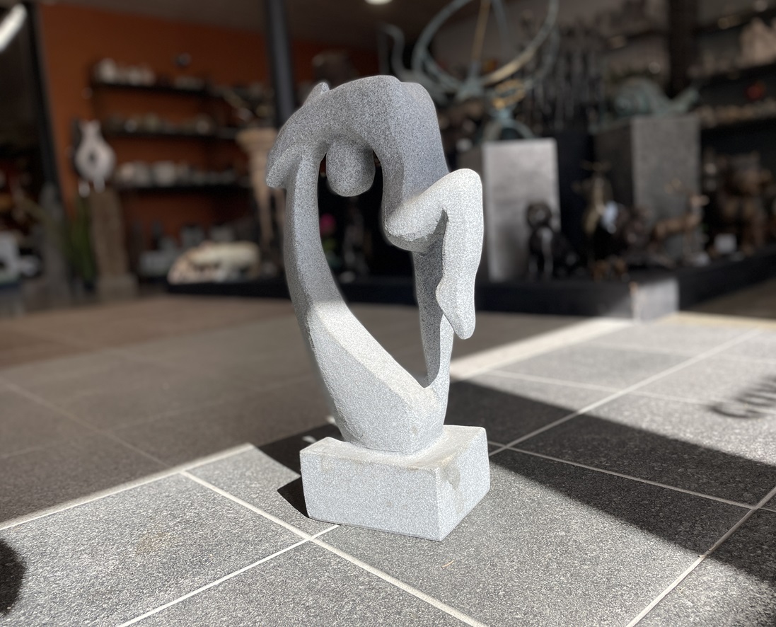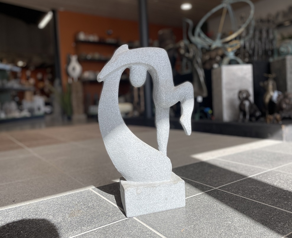 Gymnasten er lavet i gråsort granit, og er den perfekte skulptur til den der selv har passion for sporten, eller den som syntes den kunne være et smukt element til hus eller have.