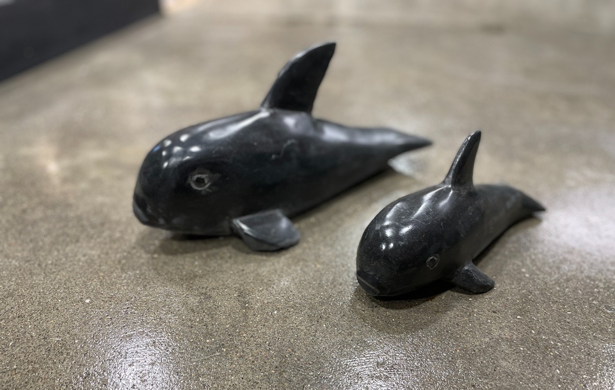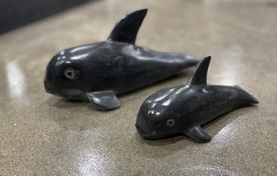 Hval, spækhugger eller marsvin kun fantastien sætter grænsen her. Det lille havdyr passer perfekt på hylden eller ved havedammen. Lavet i sort limestone/granit.