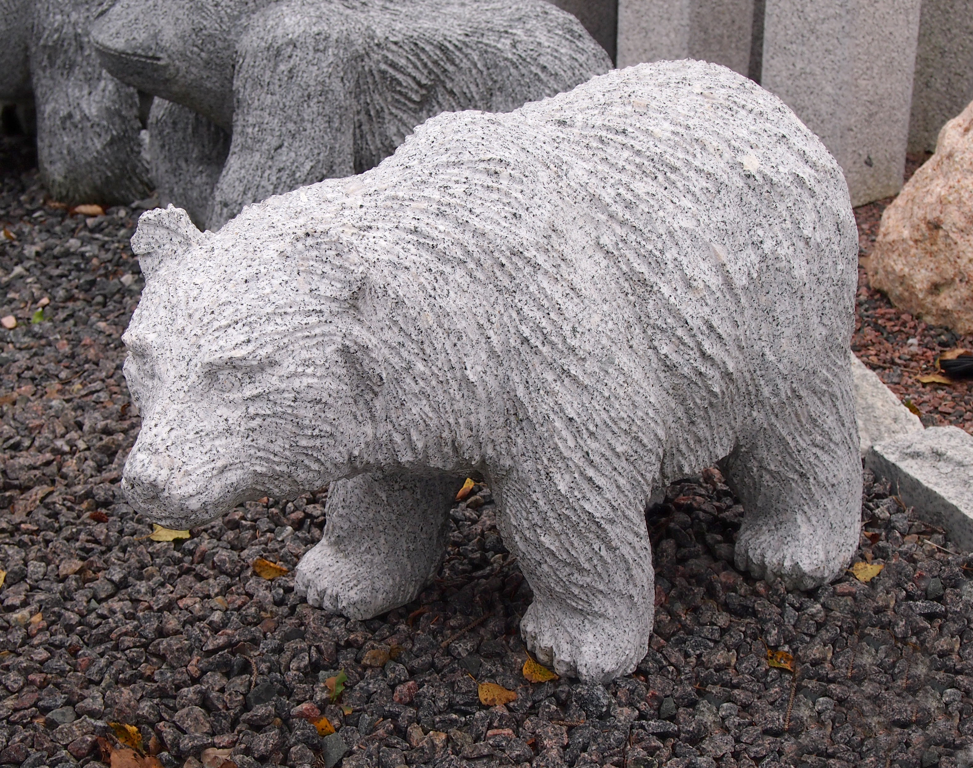 På vores breddegrader har vi ikke mulighed for at se isbjørnene i levende live, medmindre vi tager køreturen til zoologisk have. Alligevel kan vi godt nyde synet af en isbjørn i haven med denne isbjørn i lysgrå granit. Isbjørnen er imodsætningen til de levende bjørne ikke farlig og kan derfor stå fredeligt og bevogte haven.