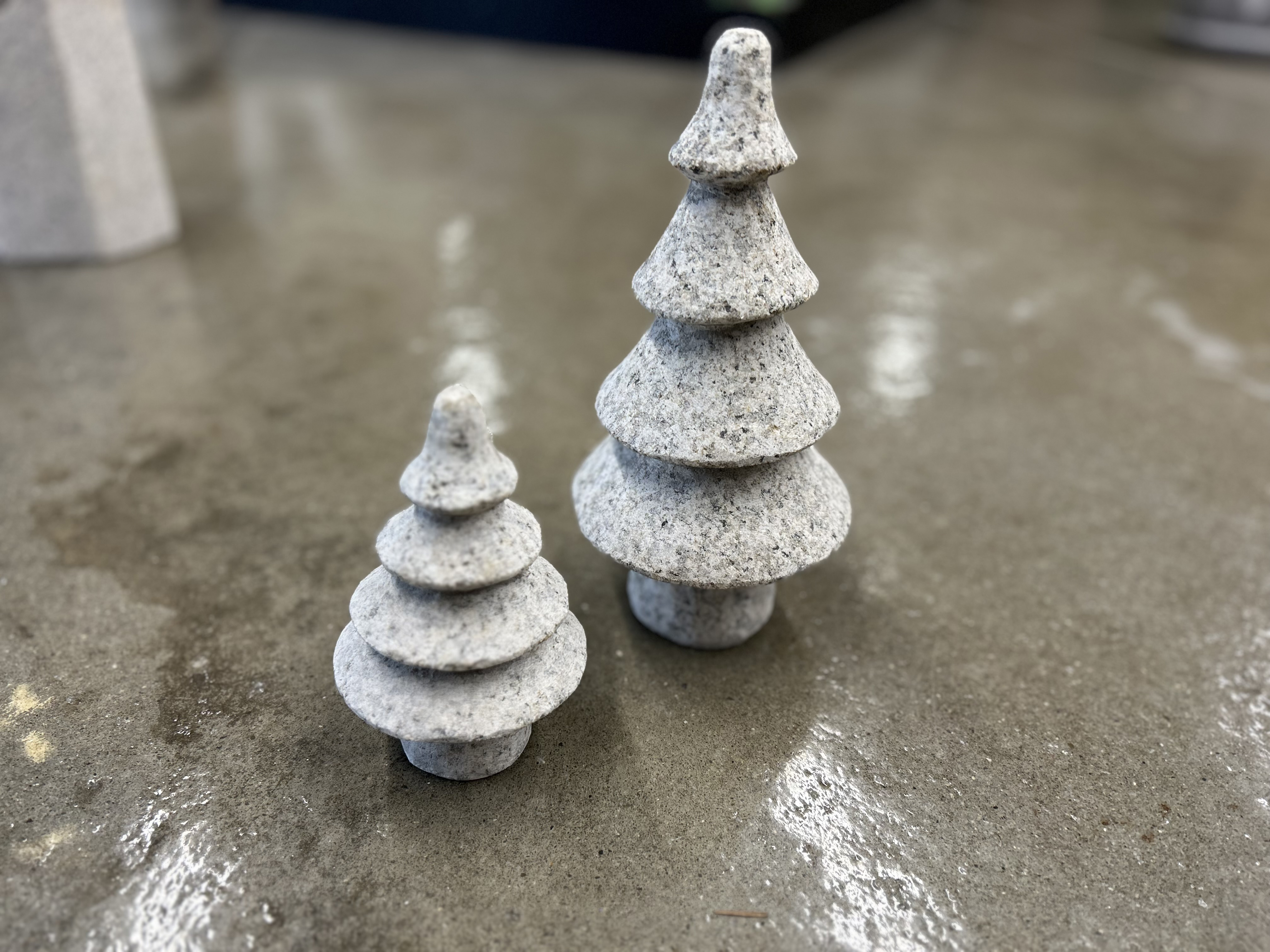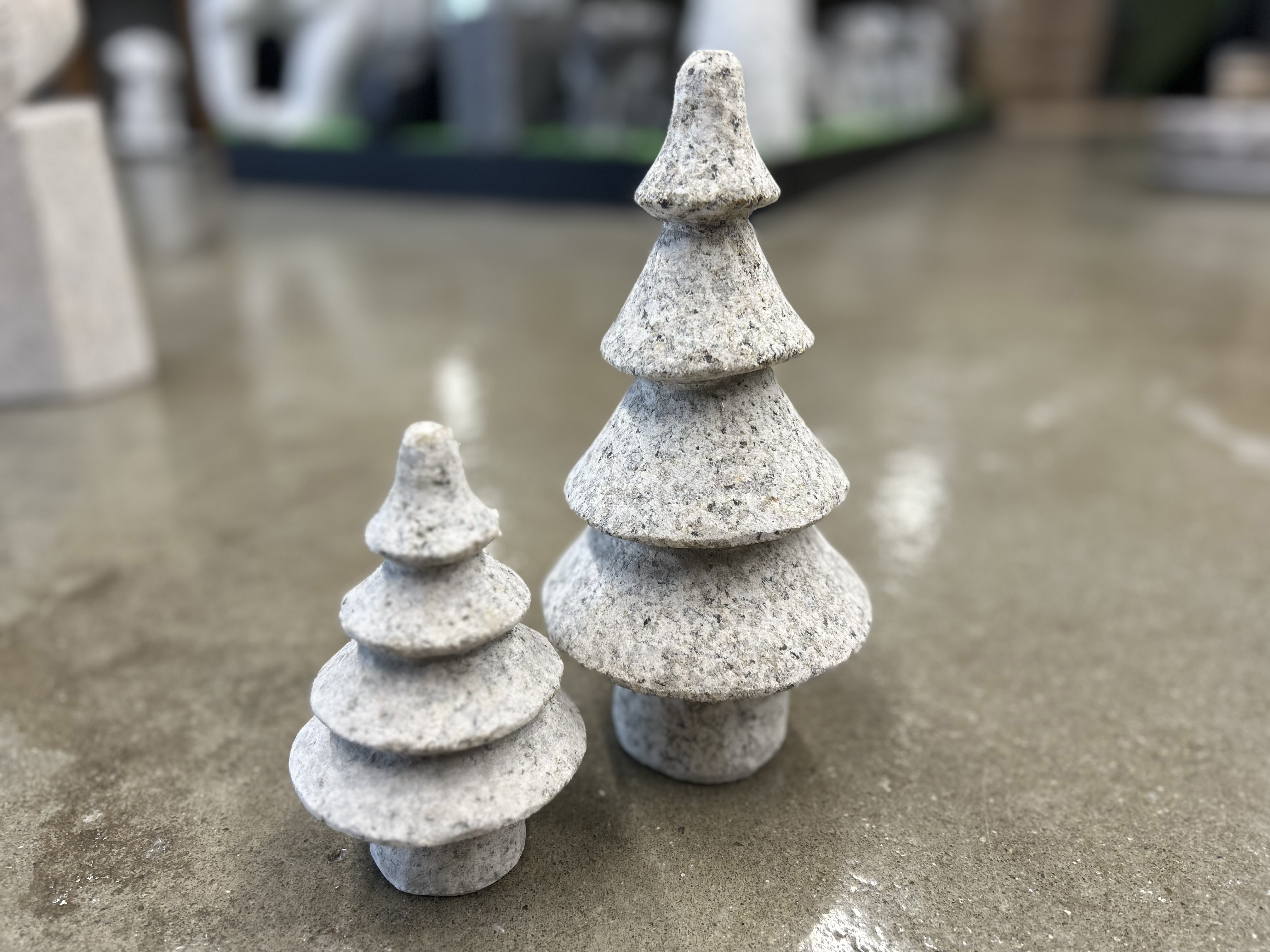Juletræer i gul granit. En fin juledekoration der holder evigt.