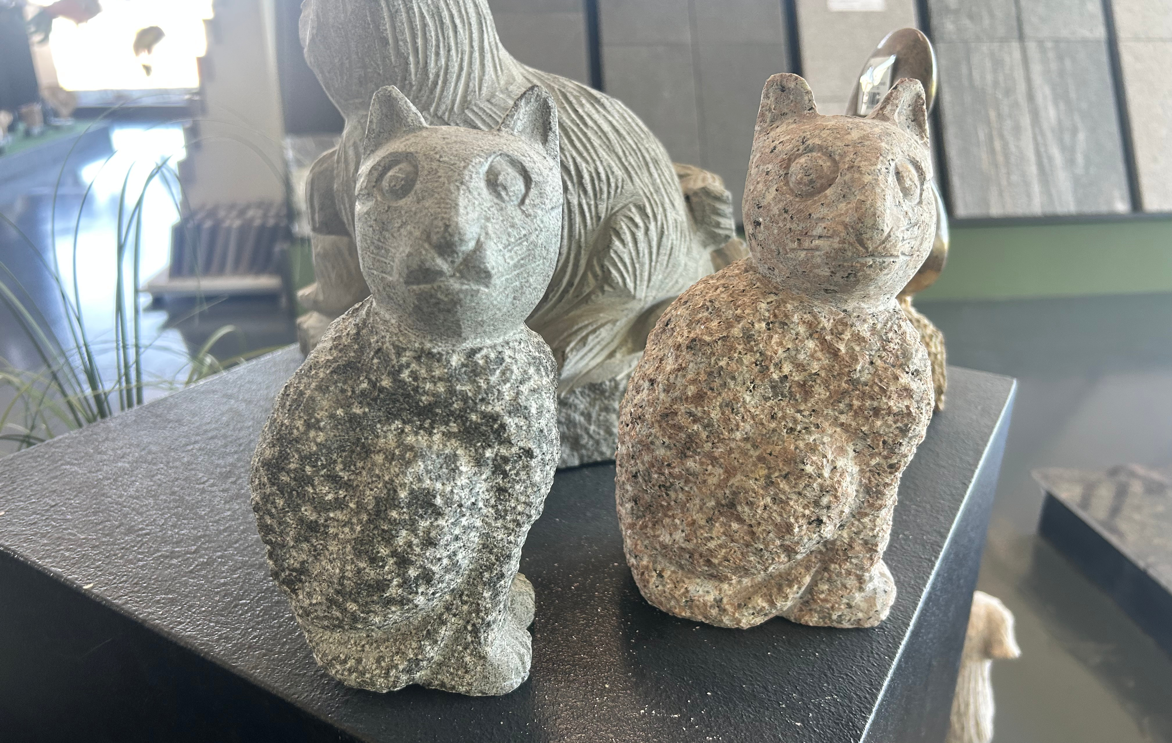 Kat David i rosa eller gråsort granit i højde 20 cm
