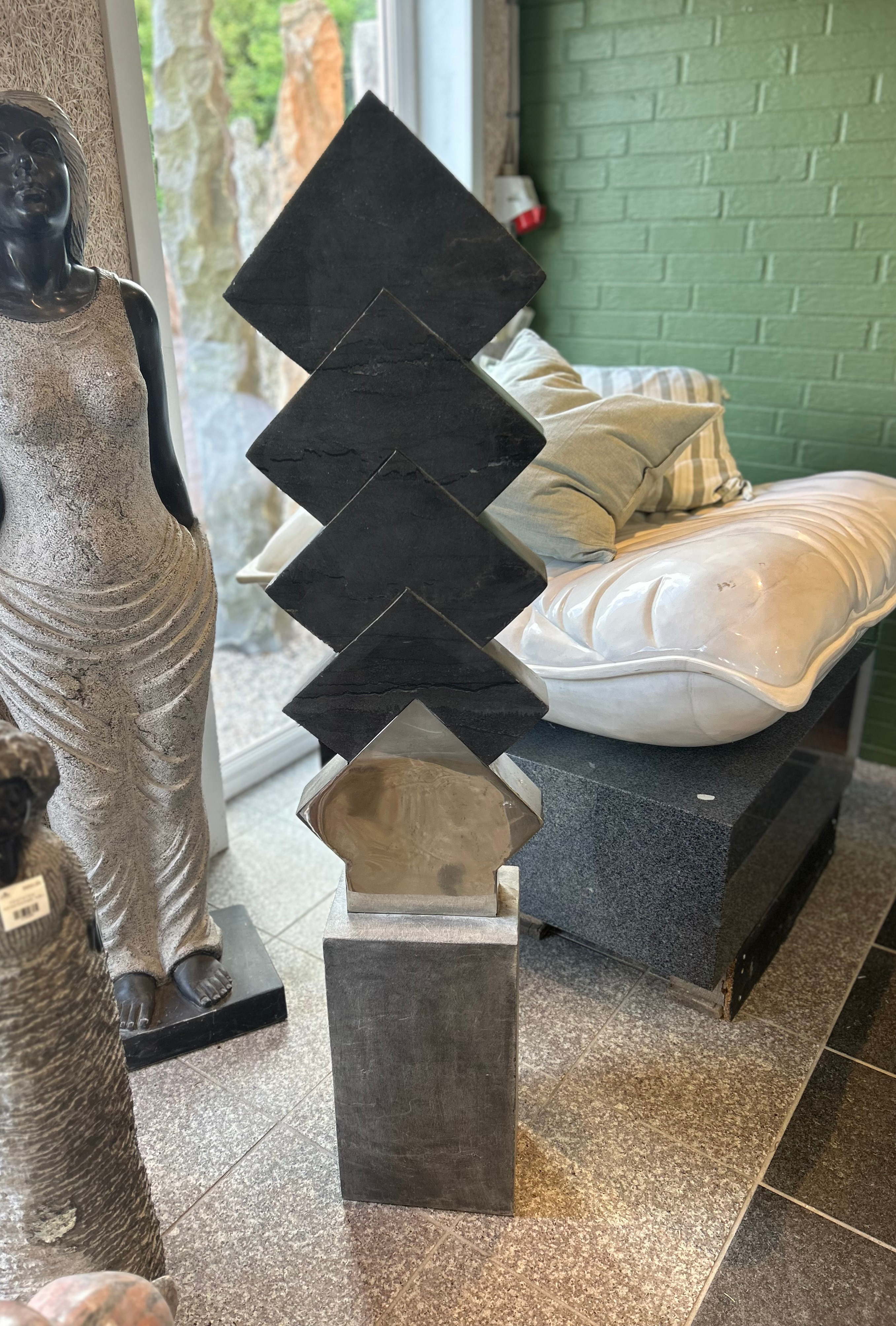 Skulptur klinge på sokkel. Produceret i sort slebet granit samt stål. Flot til en indgang hvor den kan ses fra alle sine flotte vinkler.