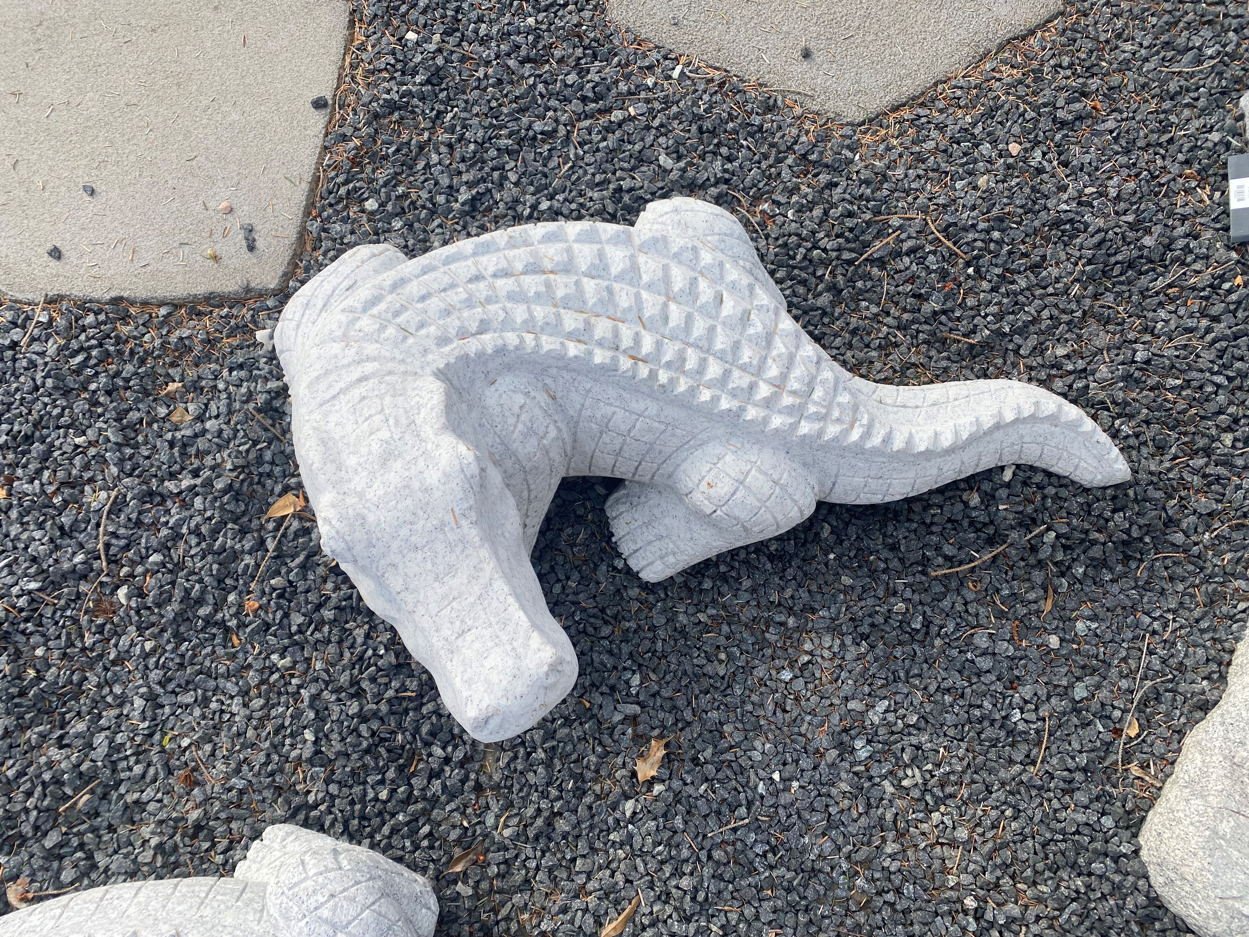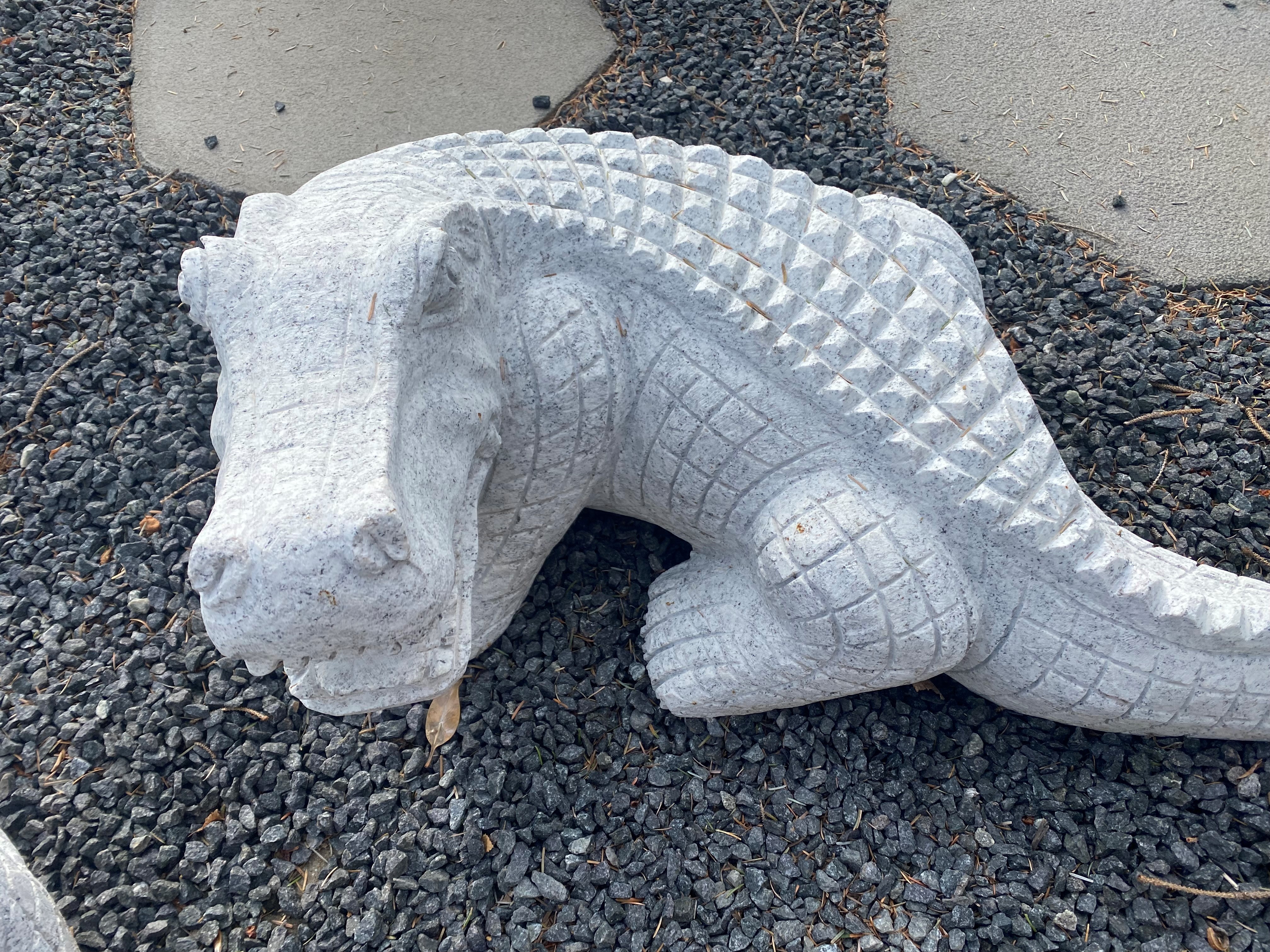 Granit krokodille i lys grå granit. En livagtig krokodille perfekt til at stå i haven til at skræmme dine gæster eller så børnene kan klappe den uden den bidder. Krokodillen er utroligt venlig og gør ikke en sjæl fortræd. Hvem vil ikke gerne prale med de har en krokodille i baghaven.