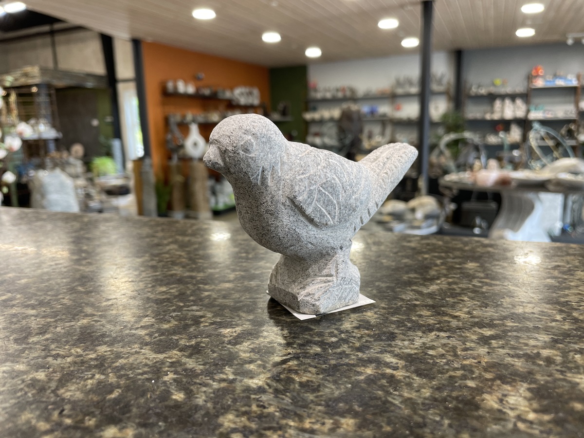 Den fine lille lærke som er lavet i grå eller rosa granit, passer perfekt til den hyggelige krog på terrassen eller som gæst ved fuglebadet. Fuglene er håndhugget og fremstår derfor ikke ens, hvilket tilføjer et charmerende look.