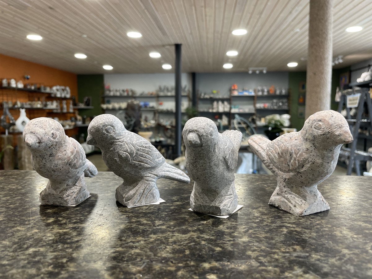Lærkerne fås med oprejst eller nedsunket hale, og er lavet i grå eller rosa granit.
