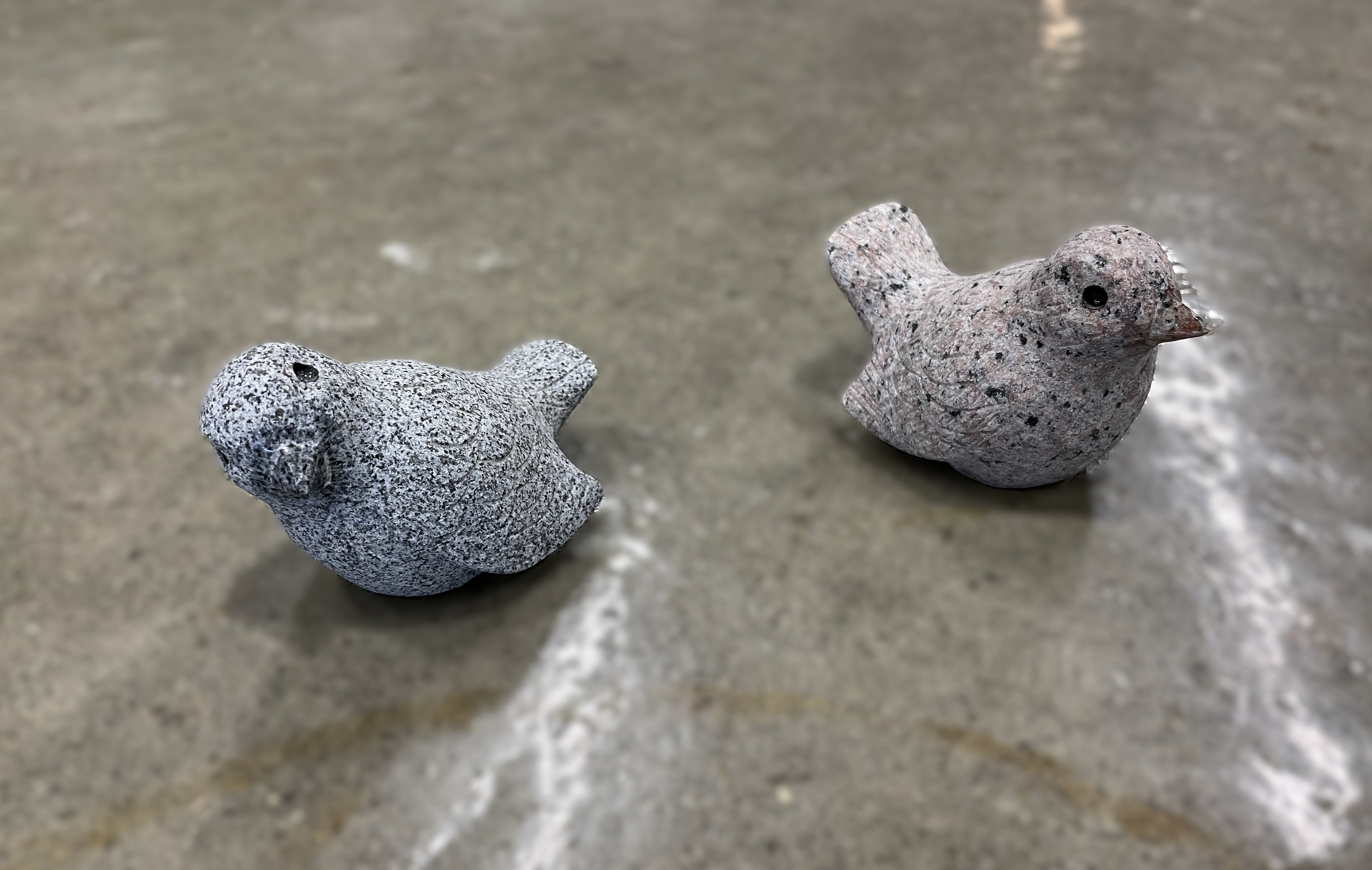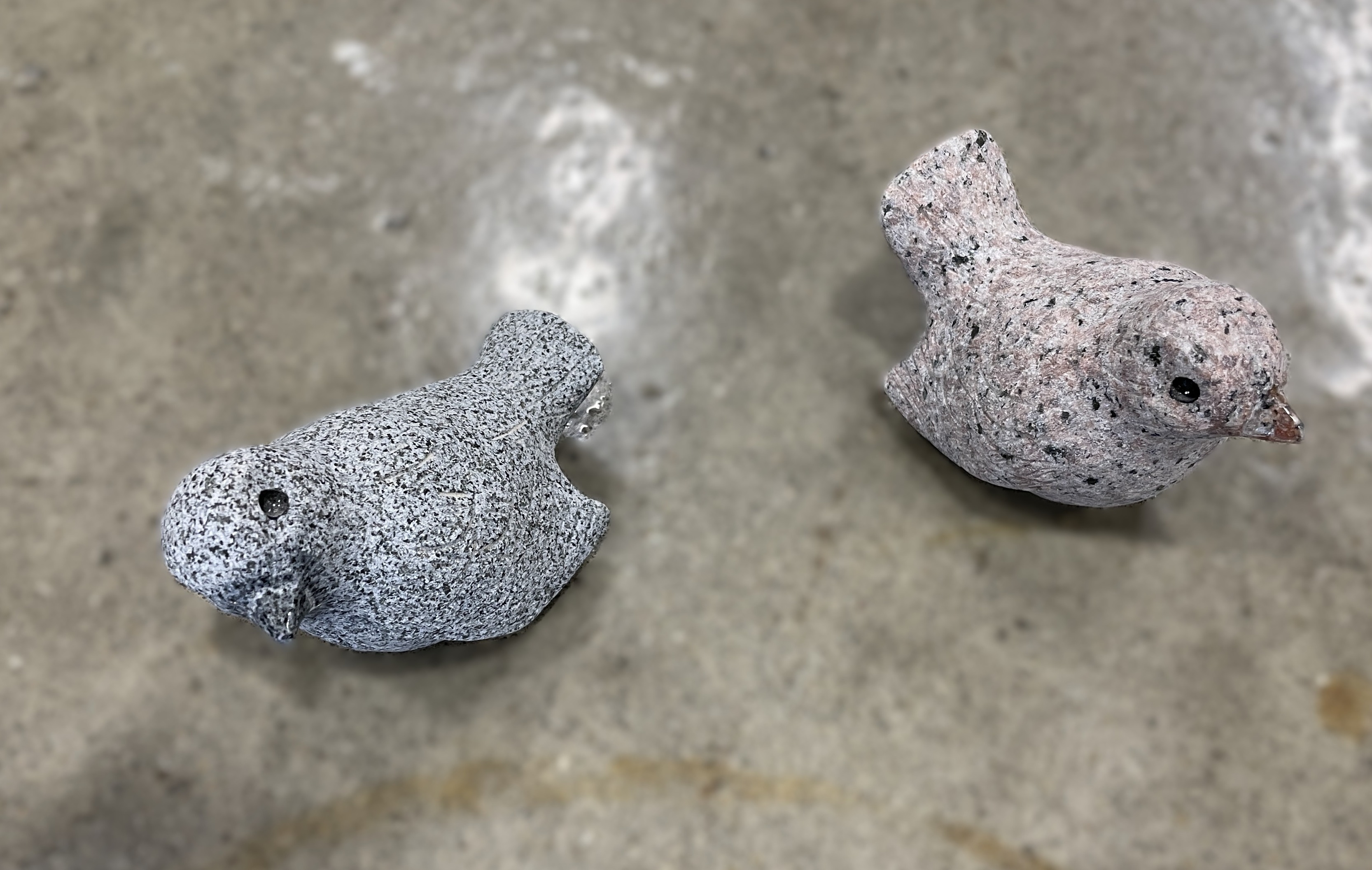 Lille granitfugl lavet i 2 farver. Fuglen har en god størrelse til pynt ved gravsteder og fuglebade, eller som dekorationselement på hylden eller i blomsterbede.