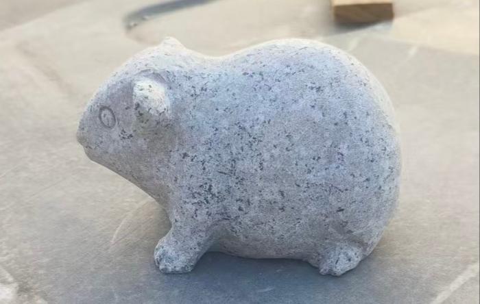 Marsvin i rosa granit med slebet overflade.