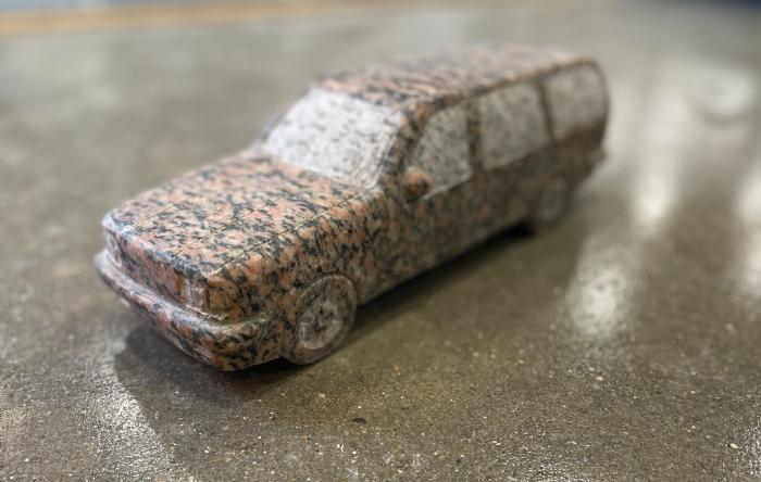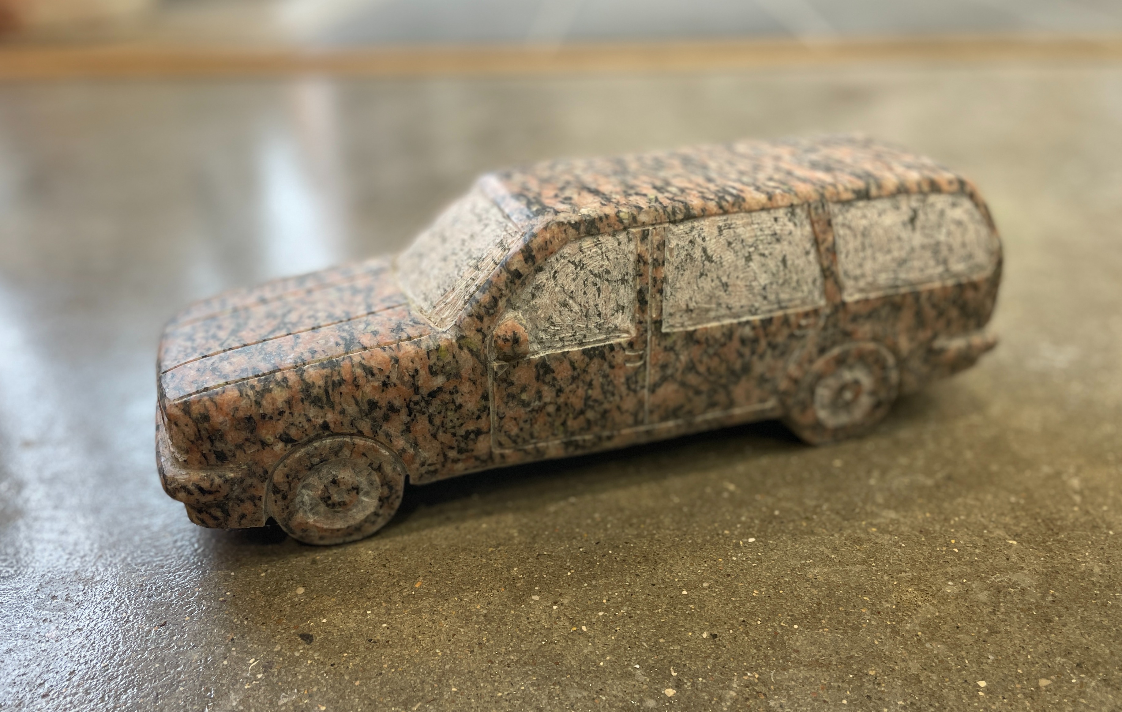 Bilens karosseri er poleret granit, mens vinduer og mindre detaljer fremstår ru/matte.