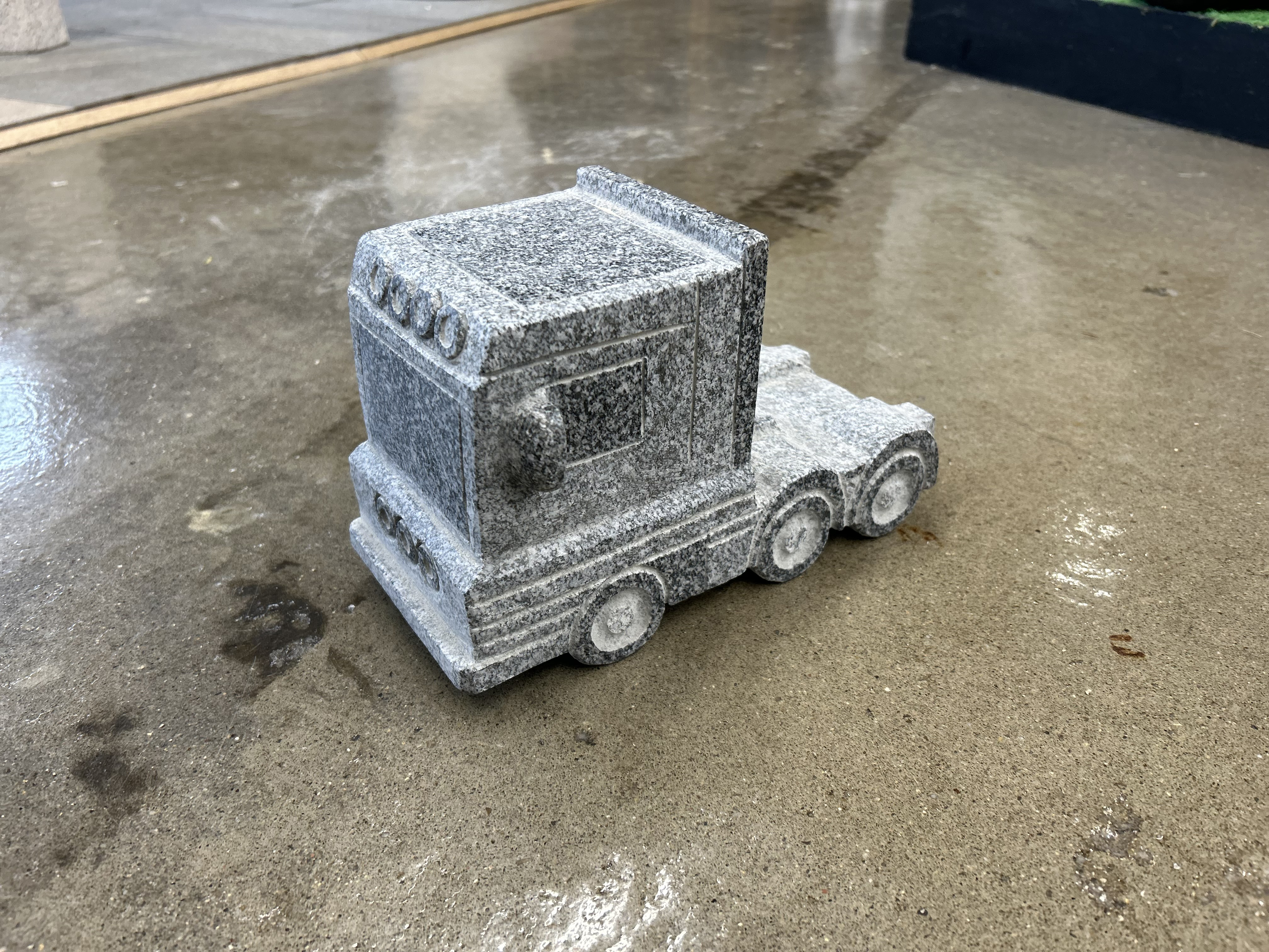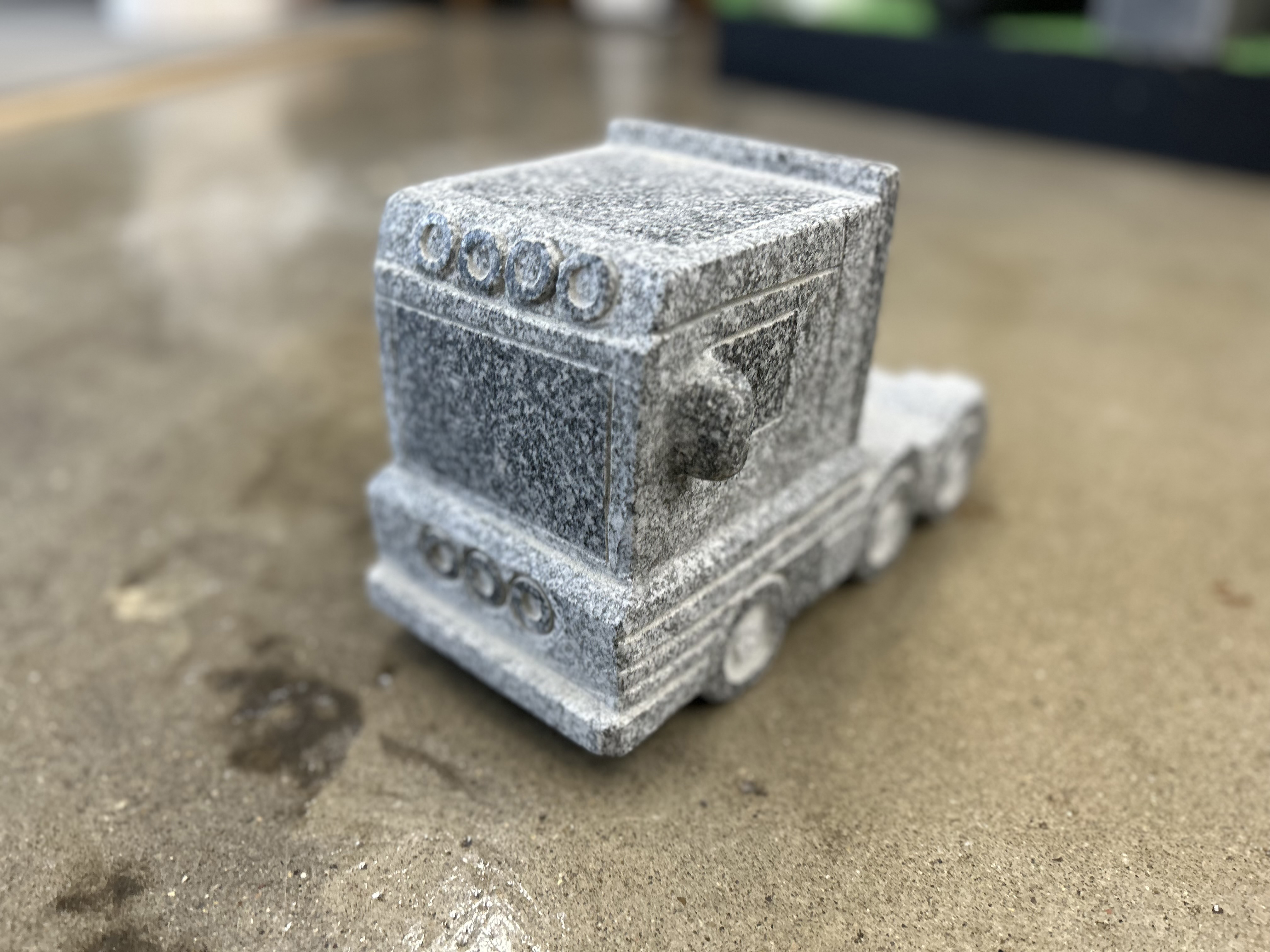 En lastbilsfigur udformet i granit, til den passionerede eller professionelle lastbilchauffør.