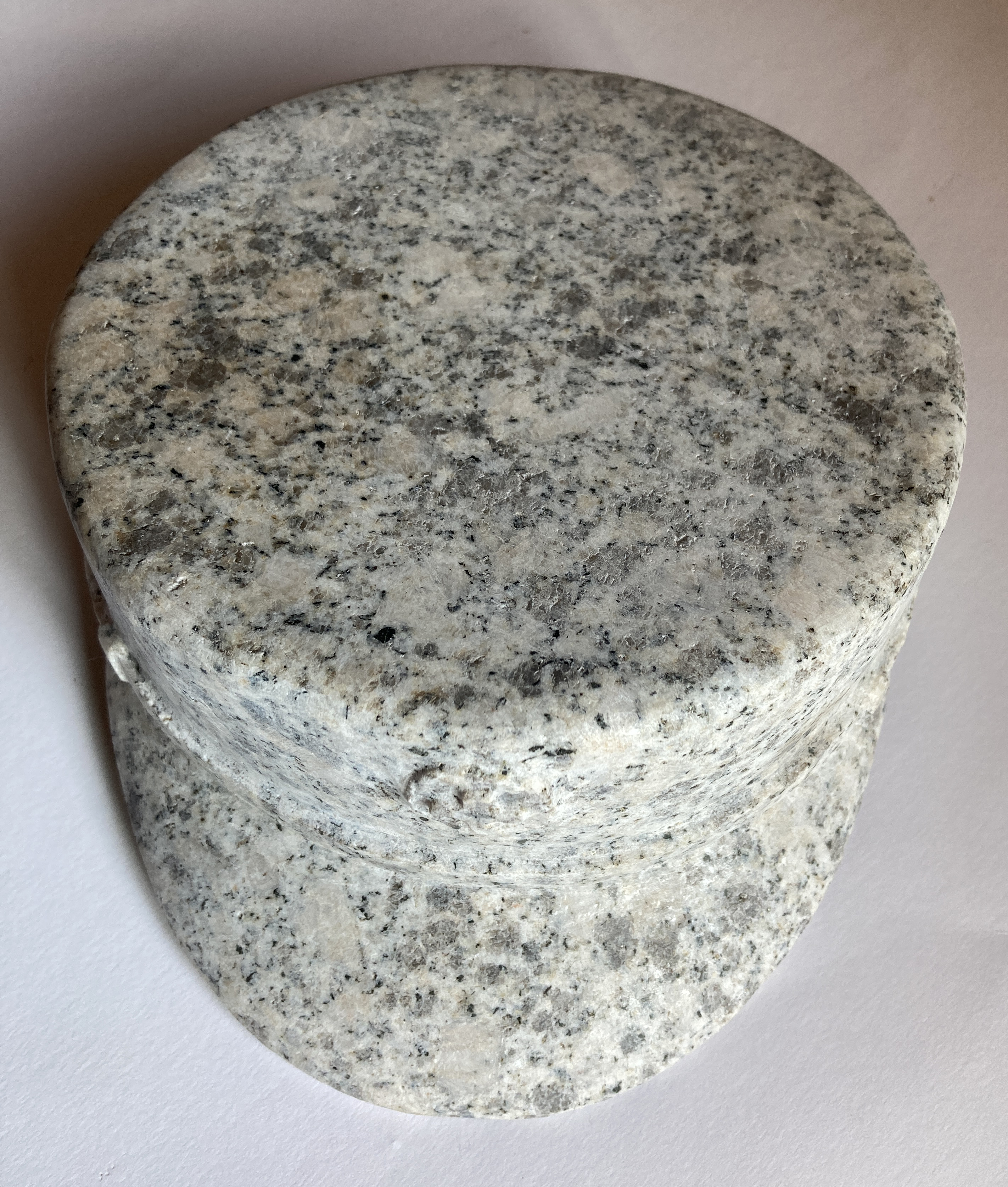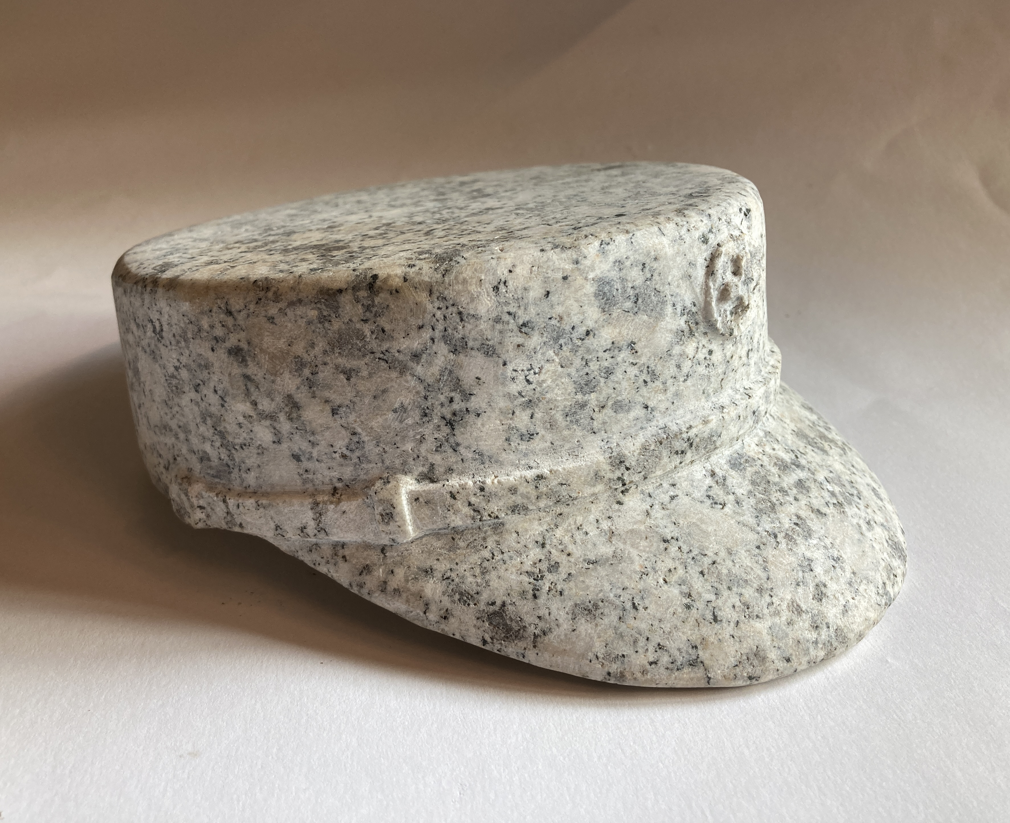 Studenter hue/kasket i lysgrå/gyldent granit. Huen er den perfekte gave til den kommende studine eller student, for at mindes en tid og for at fejre resultatet. Der vil være mulighed for at lave en inskription i toppen af huen eller lægge farve på båndet - send en mail og forhør en pris.