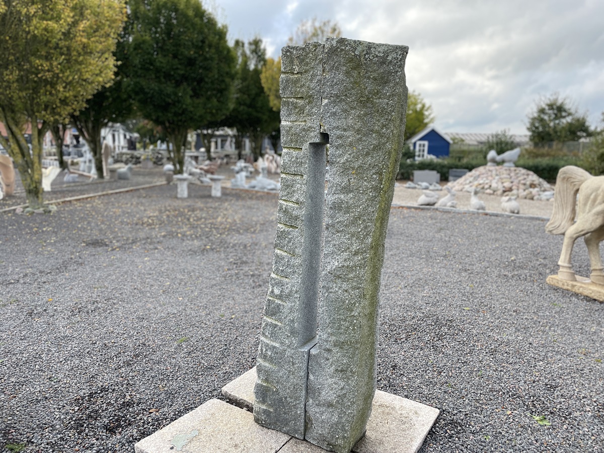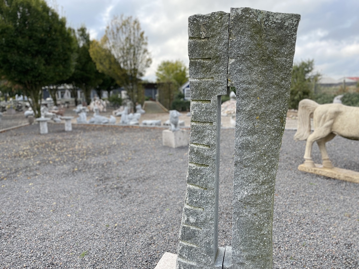 Granitskulptur lavet i gråsort granit. Skulpturen har navnet Tårnet, og har grove og rustikke detaljer - den er todelt og kan stilles samlet eller med afstand. Granitskulpturen skaber blikfang, og vil være et skuestykke i de fleste haver.