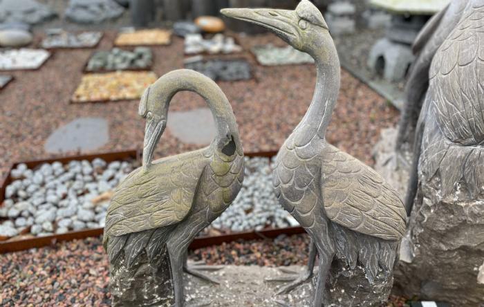 Det ses på billederne at stentypen patinere sig af vind og vejr, dette giver tranerne et mere antikt look.