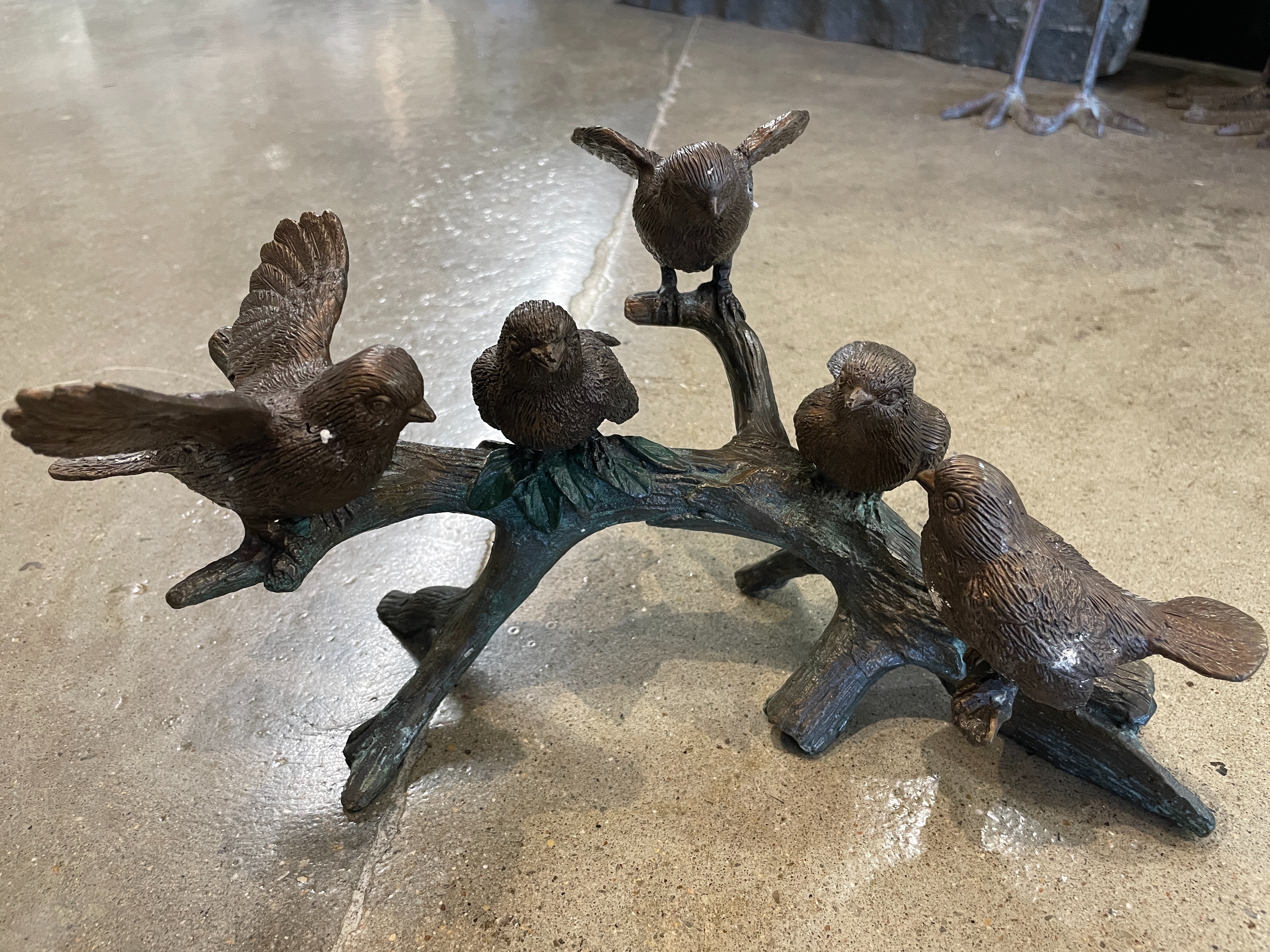5 bronze fugle på gren.