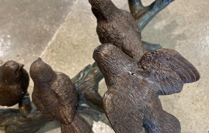 Bronzefiguren har nogle fabrikationsfejl i form af små huller og pletter - derfor denne gode pris.
