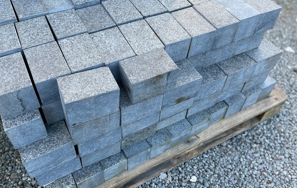Basalt klodser med jetbrændt top og savede sider. Velegnet til en spændende belægning eller bed/kantafgrænsning ved hus og have - basalten har varierende mørke nuancer som vil skabe liv til haveindretningen og kan eventuelt kombineres med andre sten.
