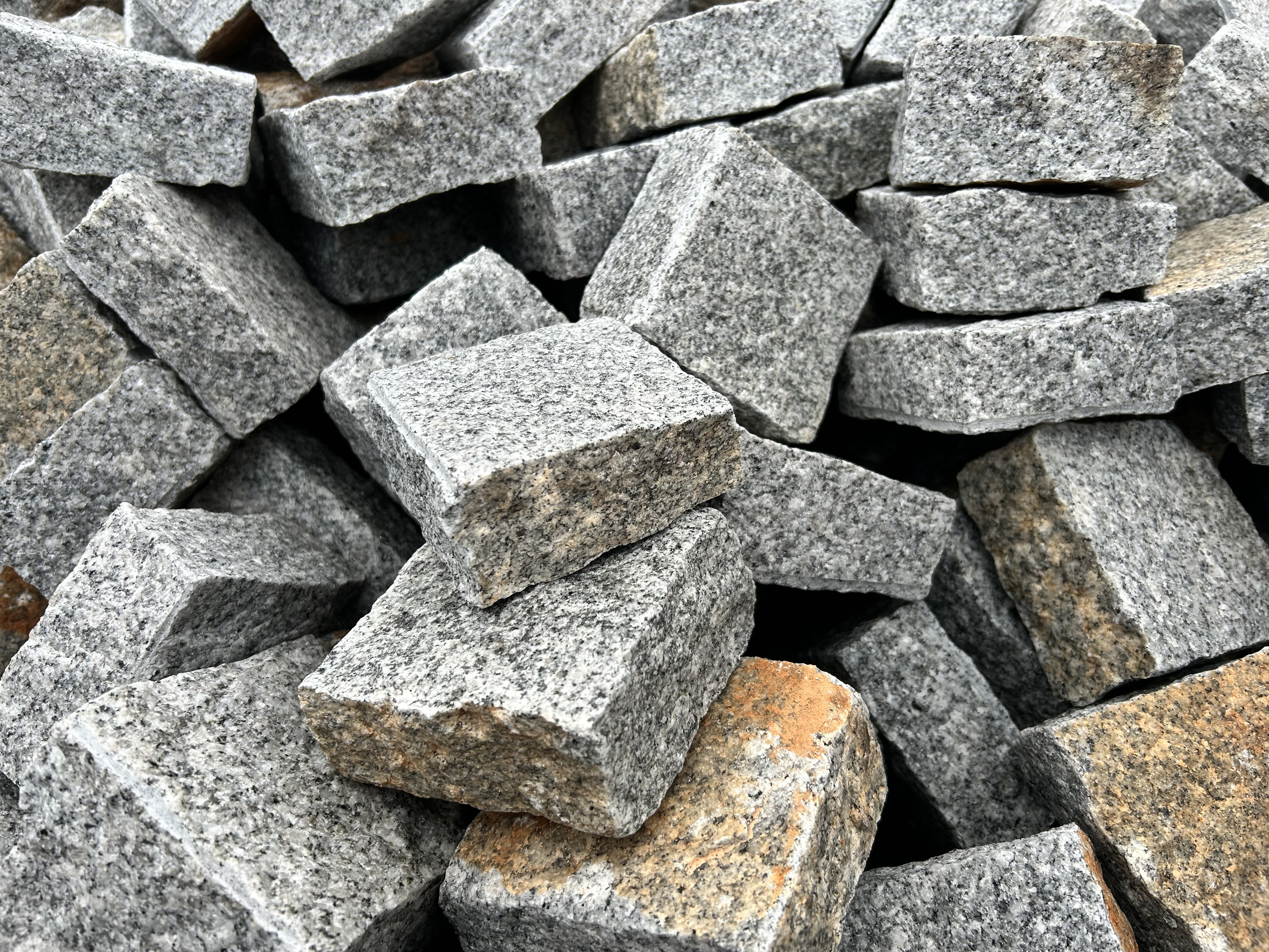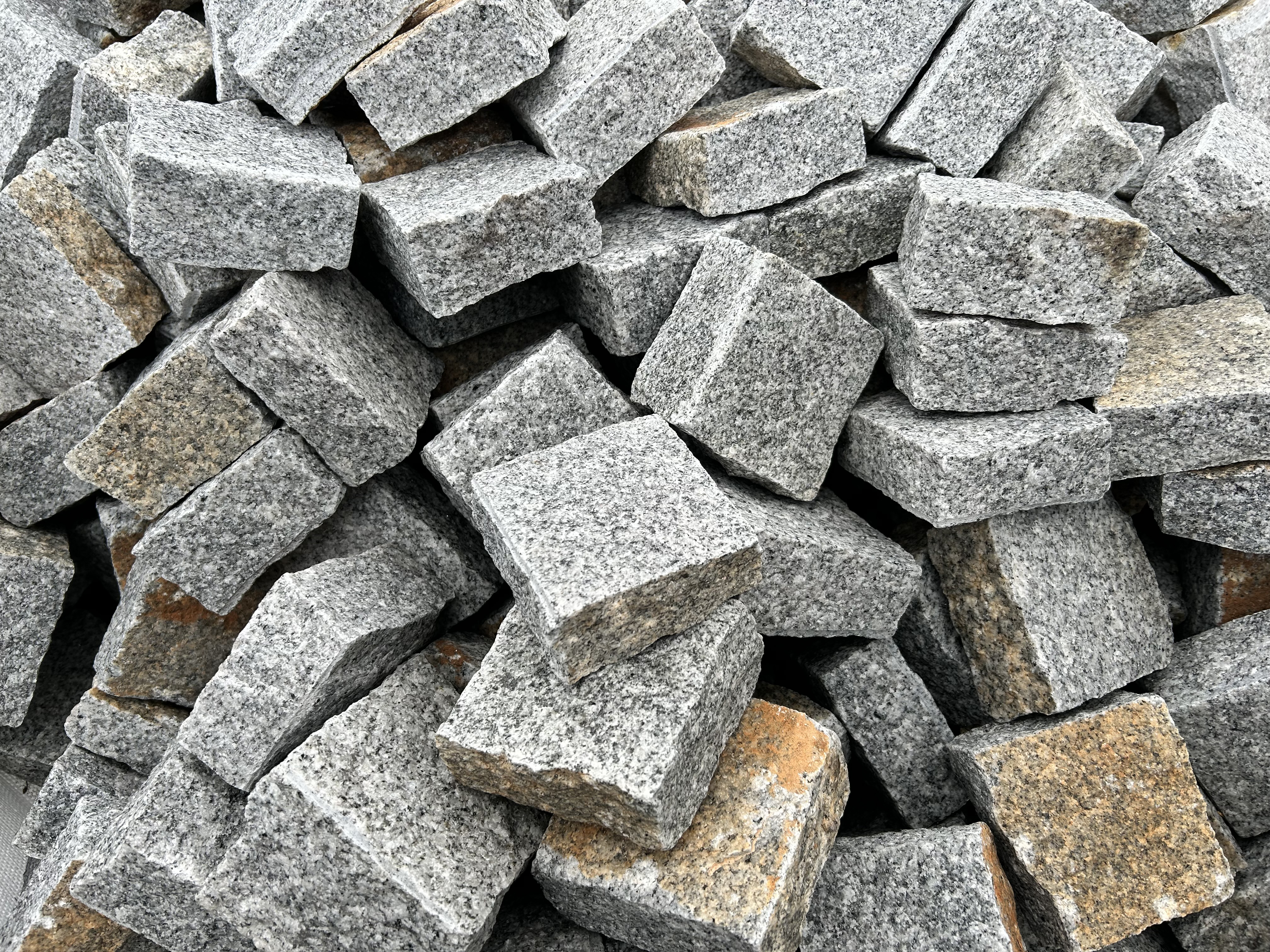 Chaussesten i lysegrå granit i flere forskellige nuancer.