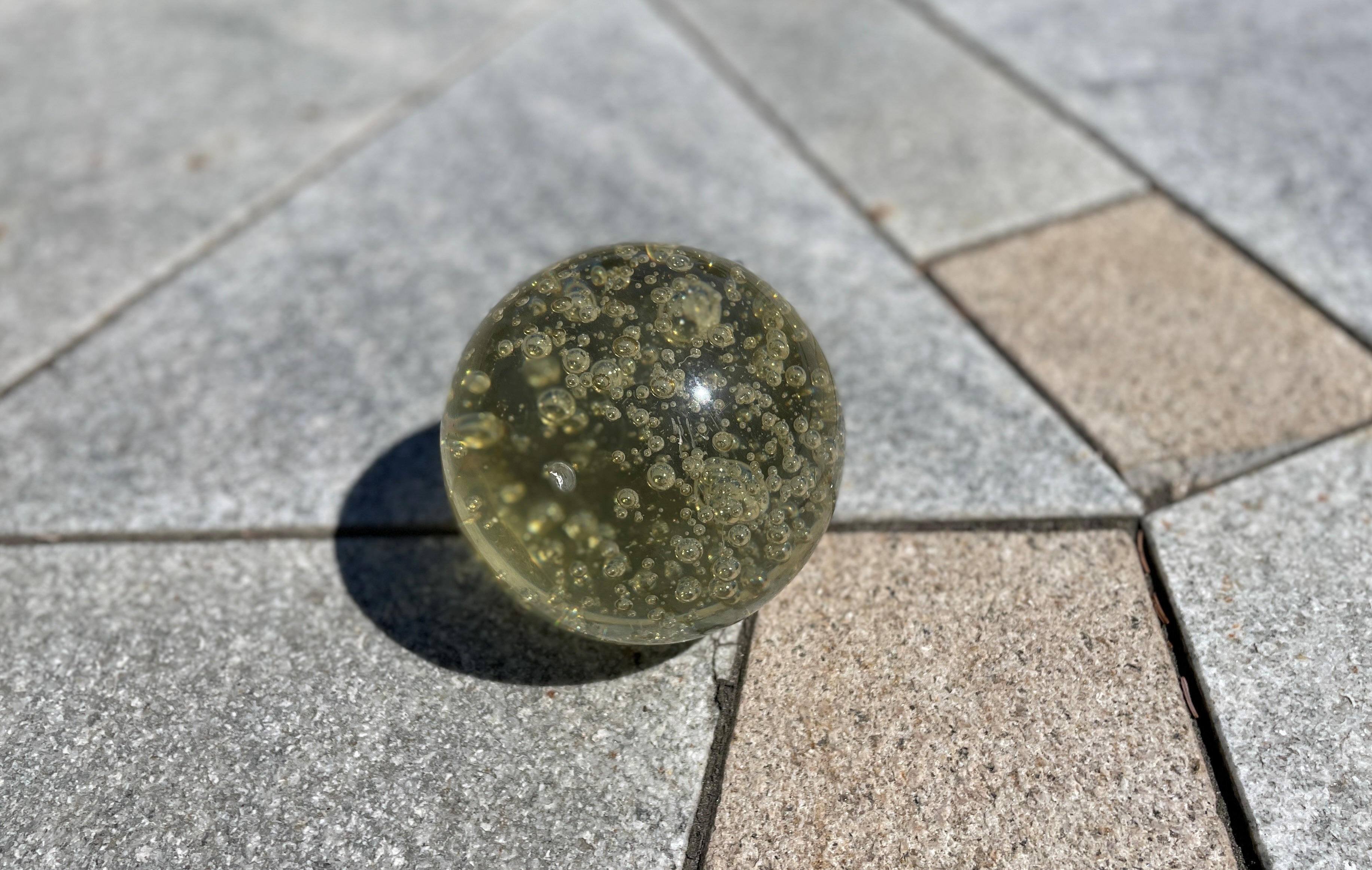 Glaskuglen kan bruges som roterende kugle til vandsten, eller andet dekorativt i haven.