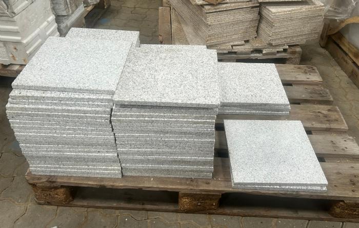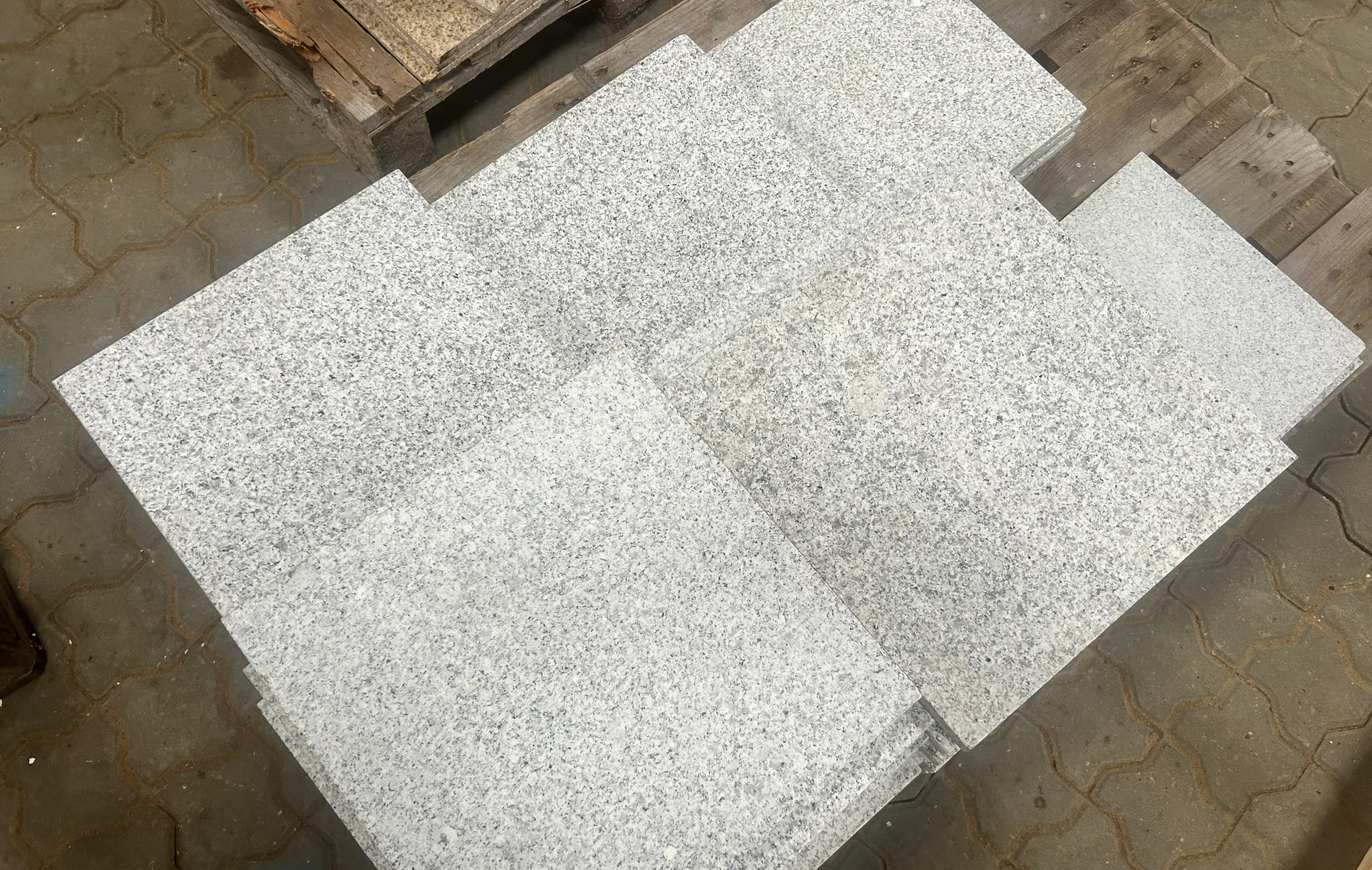 Lys grå granit fliser med brændt/børstet overflade.