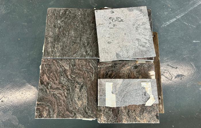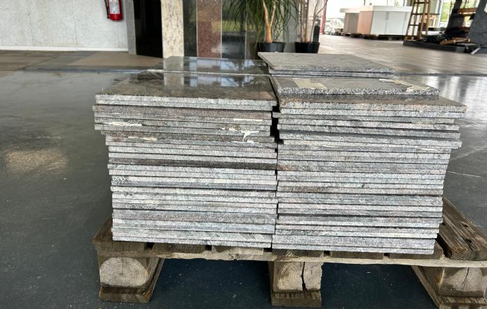 Fliserne har været brugt i udstilling og kan derfor have små ridser - dog ikke direkte betrådt. Der er dobbeltklæbende tape bag på flisersne fra brug i udstilling.