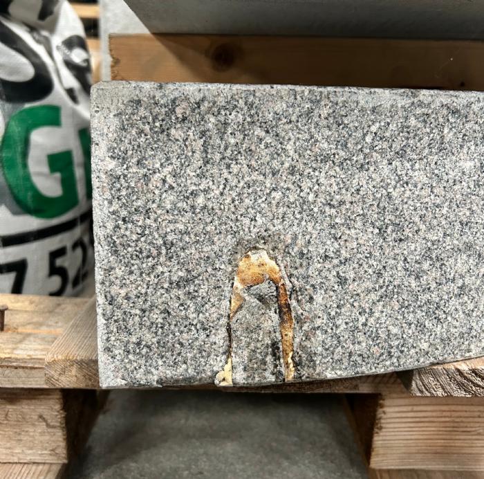 Trin mørkerød granit radius, stokhugget