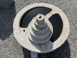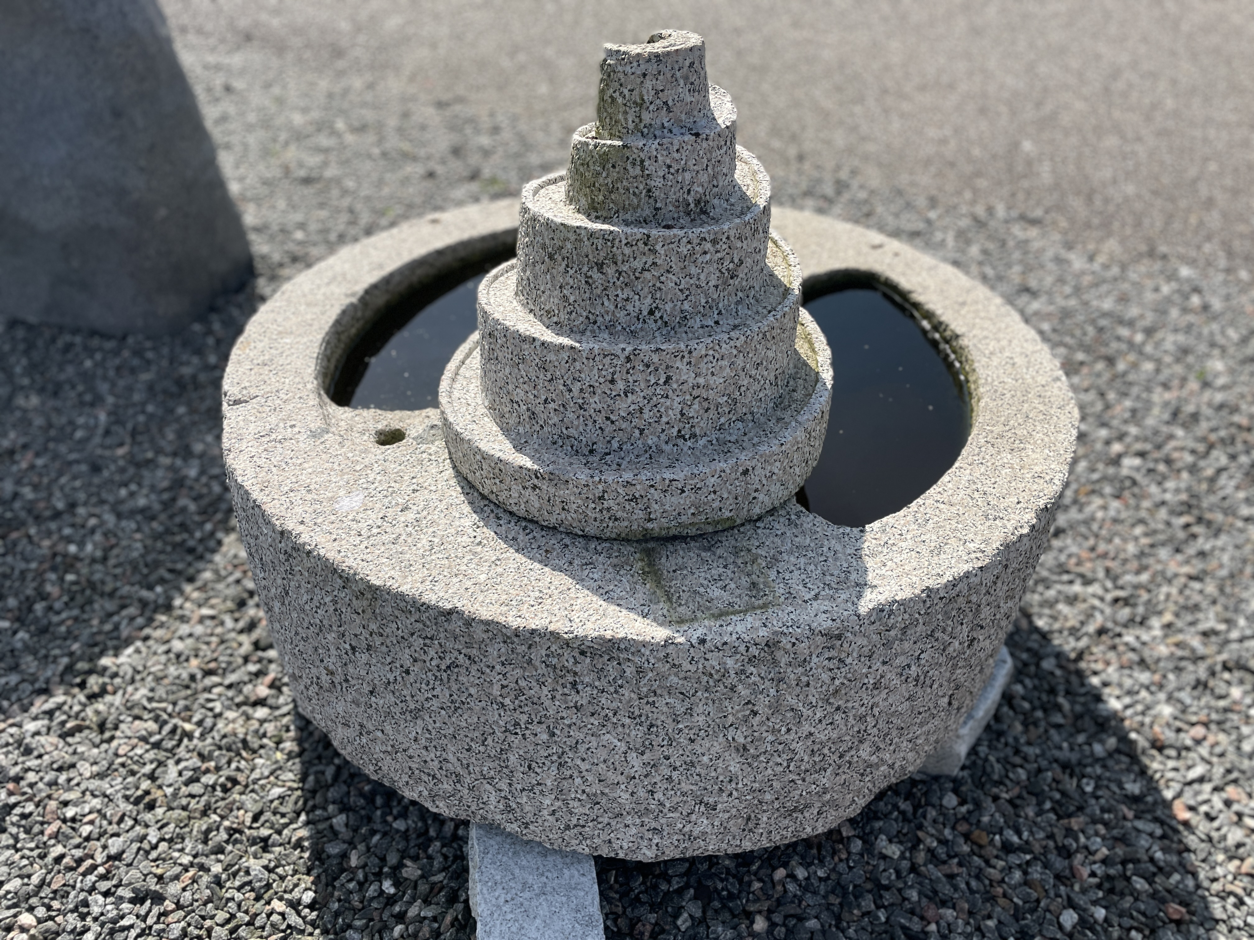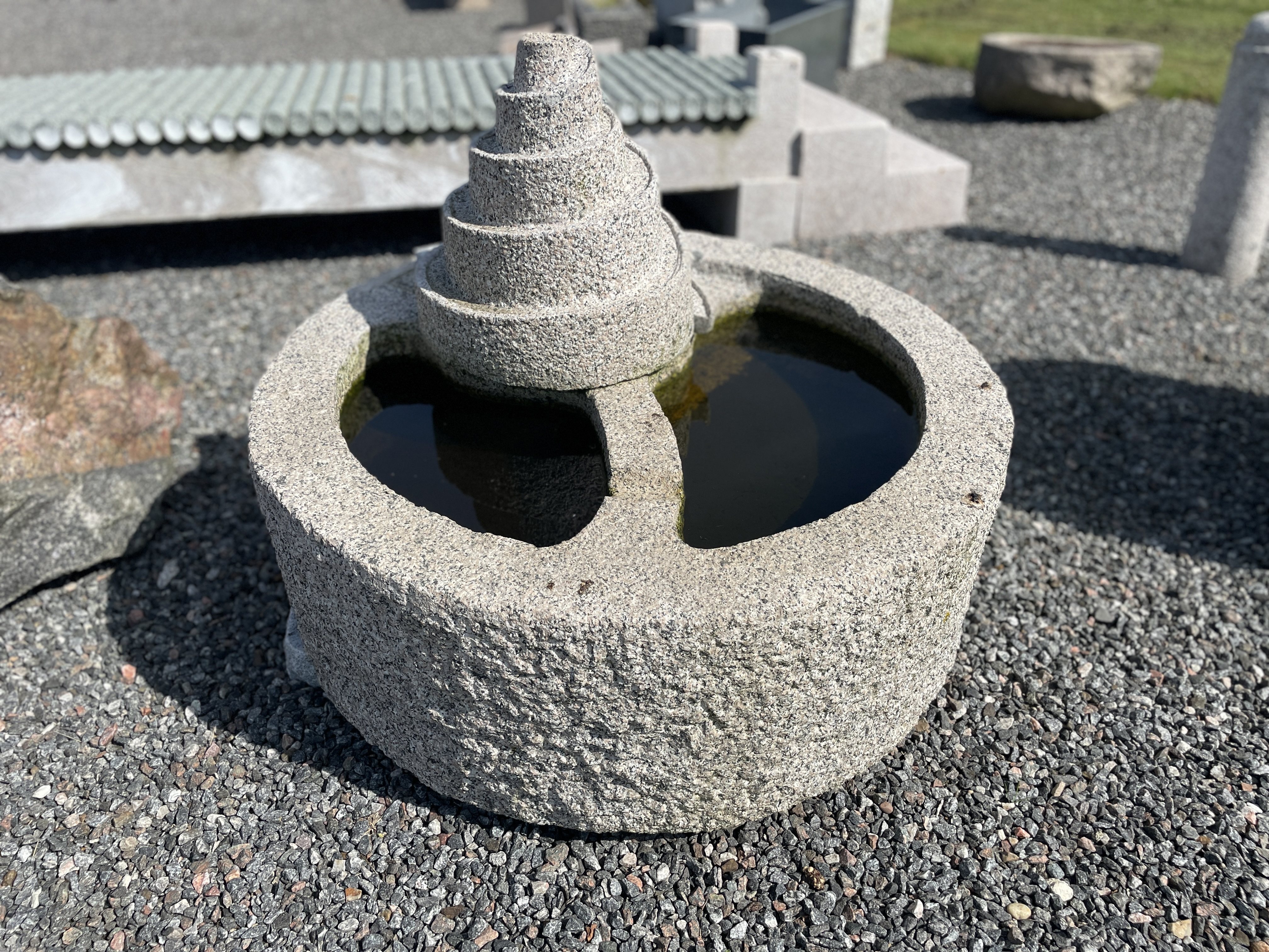 Vandsten Spiral i rosa granit. Vandstenen måler ca. Ø100 x H 75 cm.