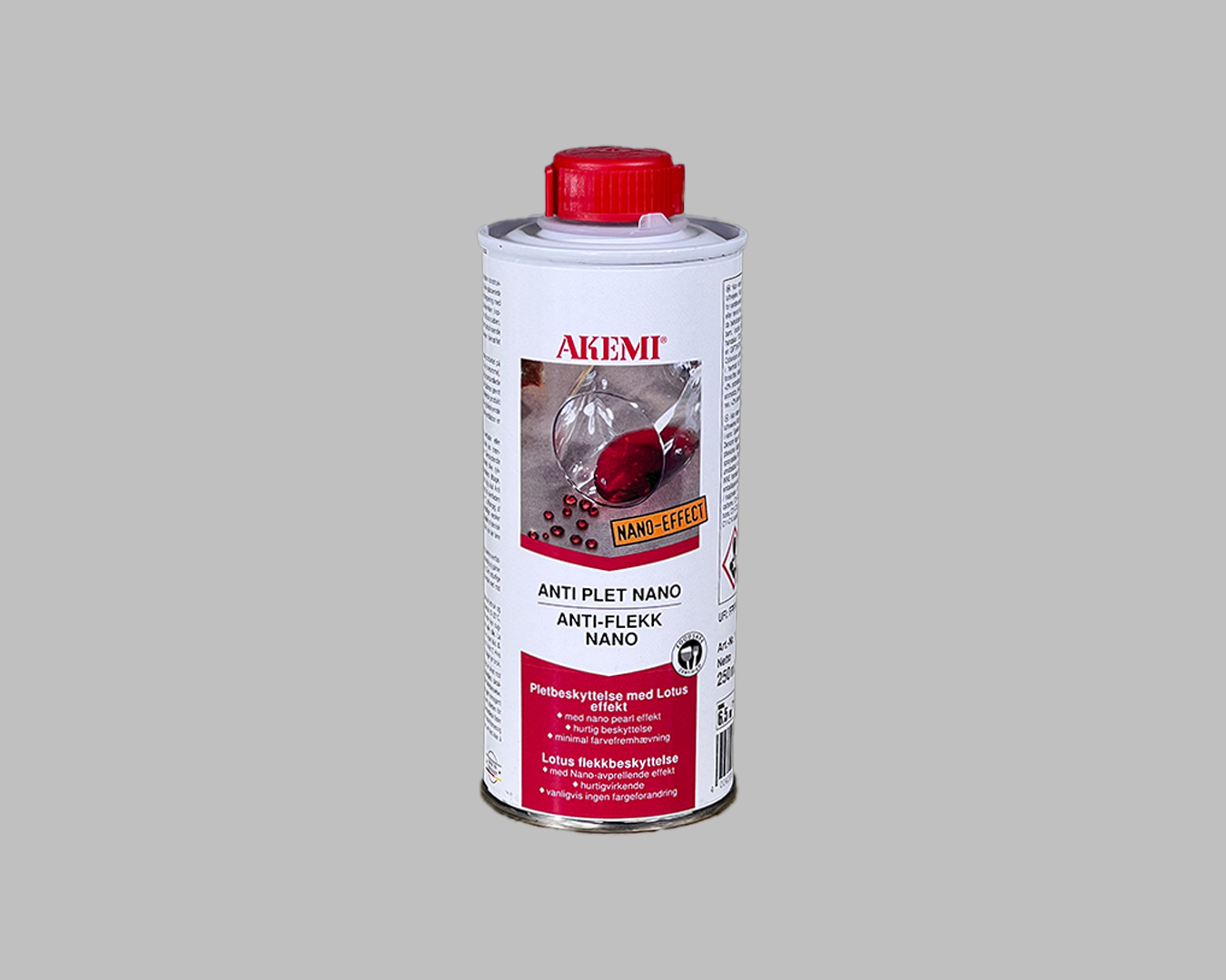 Imprægnering som afviser pletter på natursten. En specialimprægnering, som kraftigt afviser vand, fedt og olie. Anvendes i bestræbelserne på at beskytte gulve, bordplader, vindueskarme og andre arbejdsflader i natursten. Kan ligeledes anvendes både udendørs og indendørs. Denne imprægnering forhindrer, at stenen bliver misfarvet af pletter og gør samtidig rengøringen meget lettere. Stenen er stadig i stand til at ånde og bibeholder den oprindelige farve også efter denne imprægneringsbehandlig. Nano-effekten har -til forskel for Anti plet super- en mere vedvarende effekt. Den beskyttende effekt begynder allerede efter nogle minutter og har fuld virkning efter 2-3 timer.