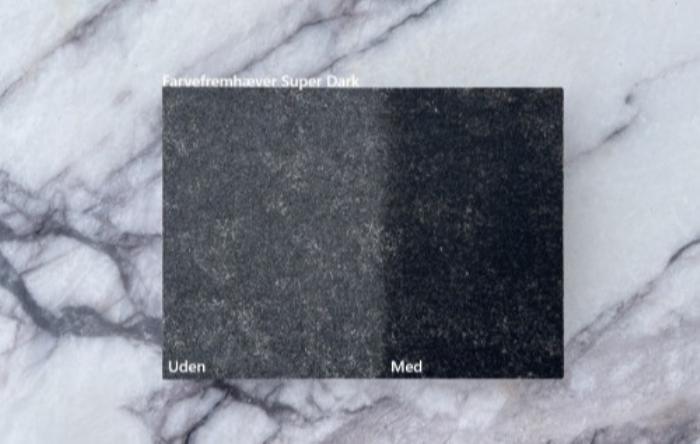 Farvefremhævning til mørkere sten. Vejrbestandigt produkt med langtidsvirkende effekt til indendørs og udendørs brug. Specielt velegnet til at farvefremhæve på mørke stentyper. Dækker mindre ridser og gør dermed stenens overflade mere ensartet at se på. Fortrinsvis egnet til polerede og finslebne overflader.