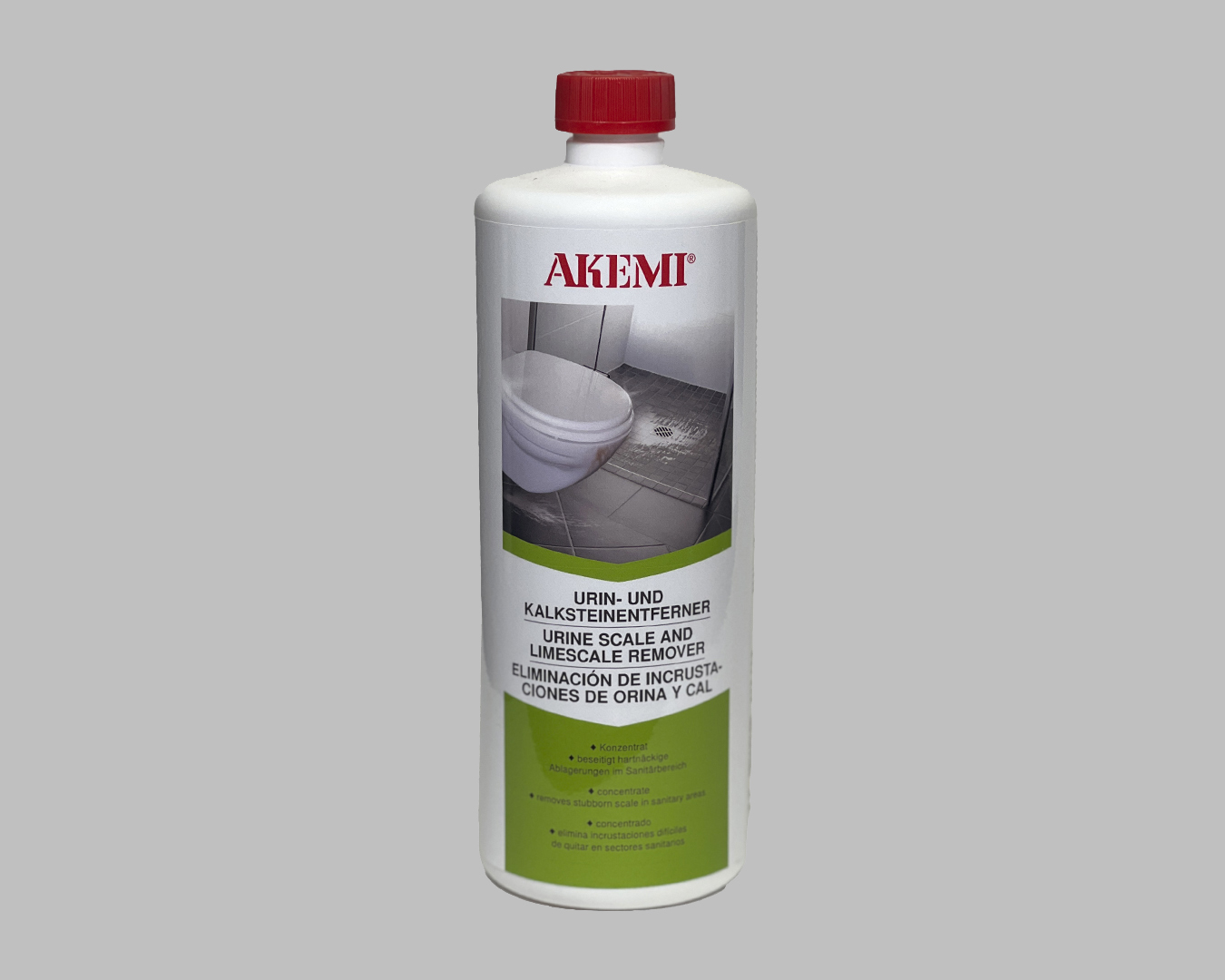 Akemi Kalk og Urinstensfjerner. Fjerner stædige urinbelægniger, kalkbelæninger, sæberester osv. Kan bruges på de fleste overflade: ru, fintslebne, savet, poleret og brændte. Påføres med moppe eller børste.