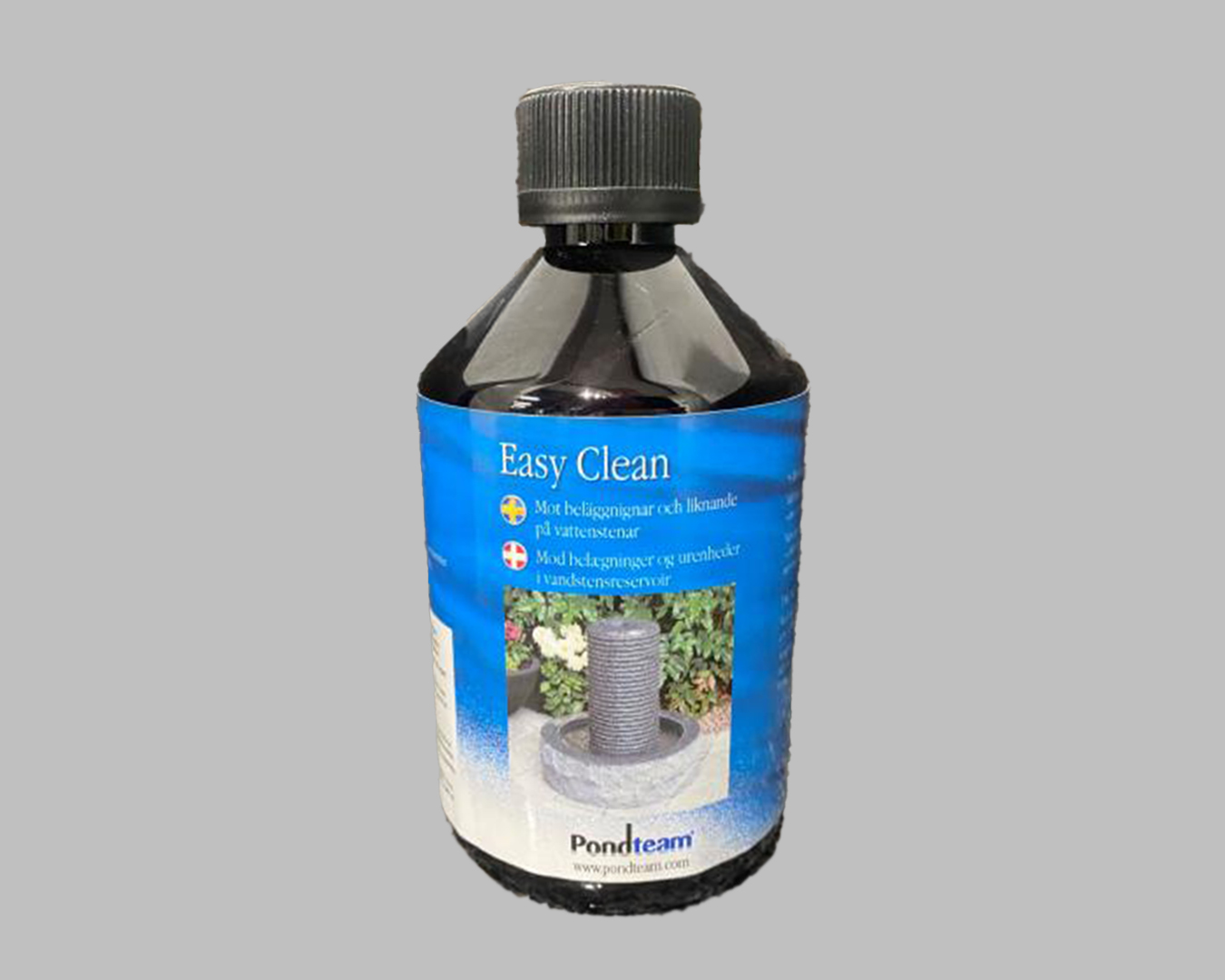 Easy Clean modvirker belægninger på figurer eller vandsten. Er beregnet til lukkede systemer såsom vandmiljøer og hjælper til at modvirke belægninger som kan misfarve stenen. Er IKKE beregnet til brug i havedamme eller lignende.