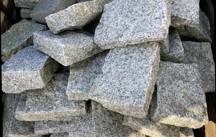 Lille flise - også kaldet klosterhvede i grålig granit med let kløvet overflade.