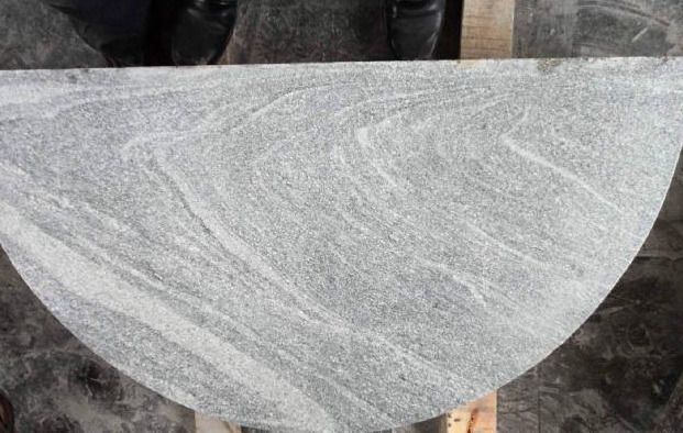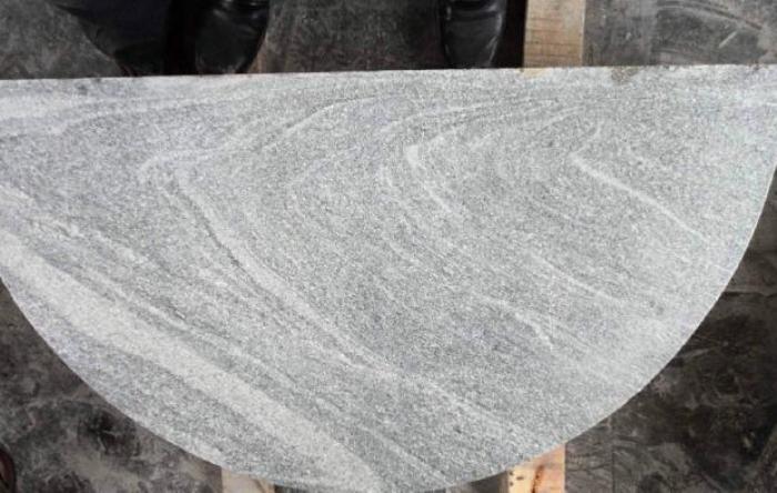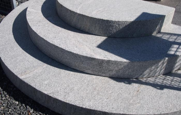 Trappetrin radius også kaldet halvcirkel i grå indisk granit med store årer.