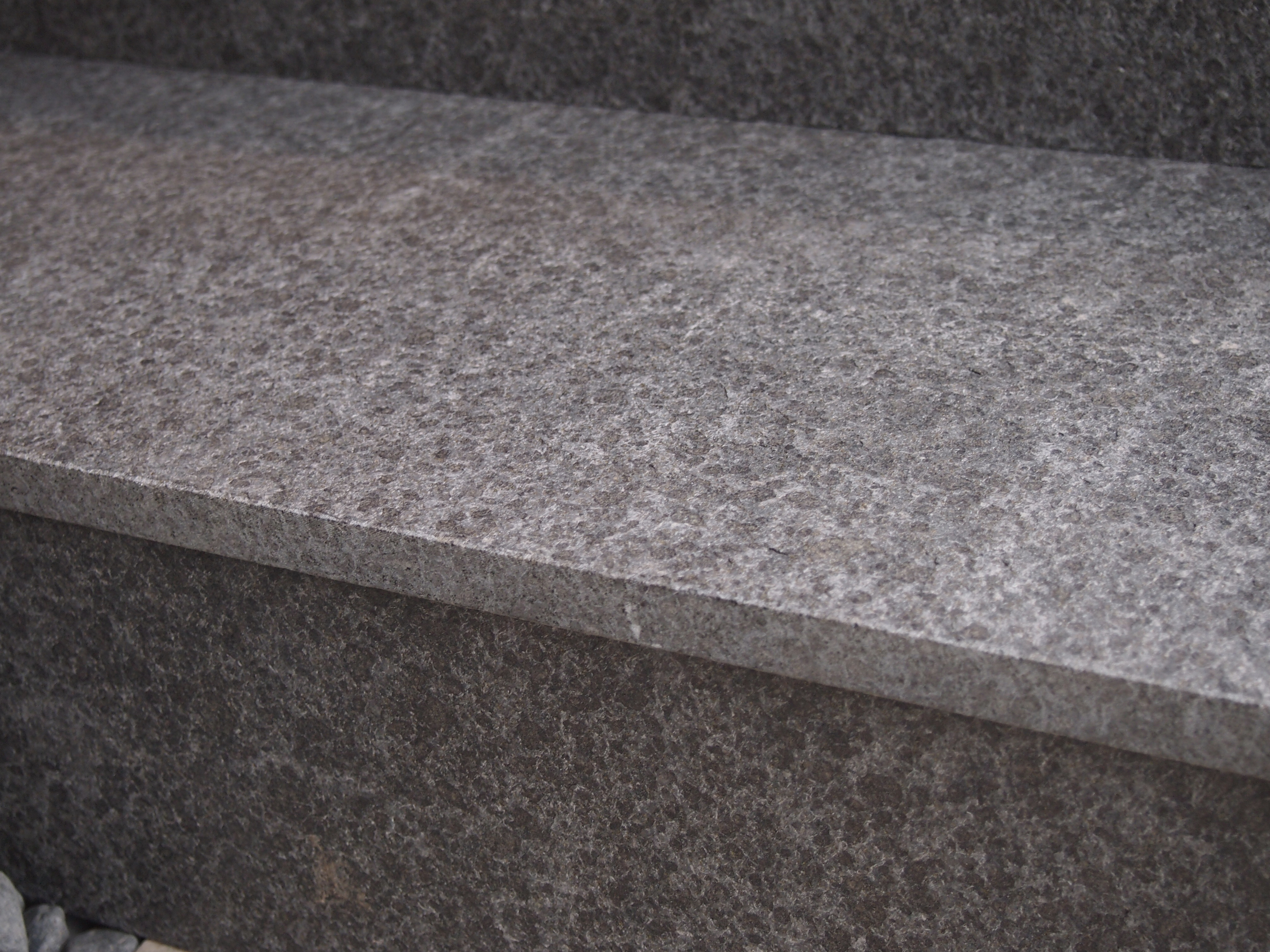 Beklæd din eksisterende betontrappe med hele naturstensplader i sort basalt. Med disse trappeplader slipper du for løse fliser og frostsprængte fuger på din trappe. Det er en rigtig funktionel løsning til en trappe, der giver indtryk af massive trappetrin.