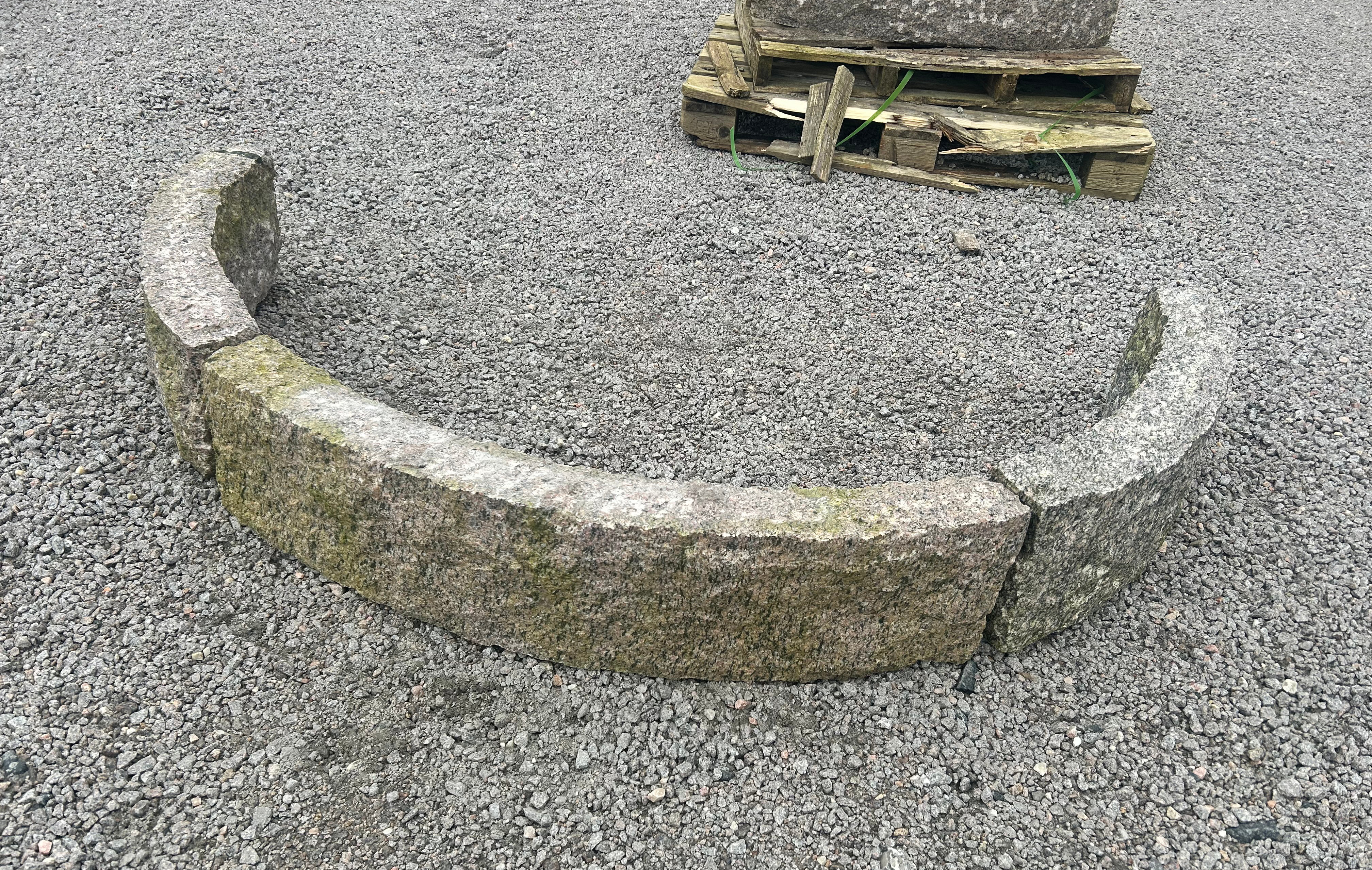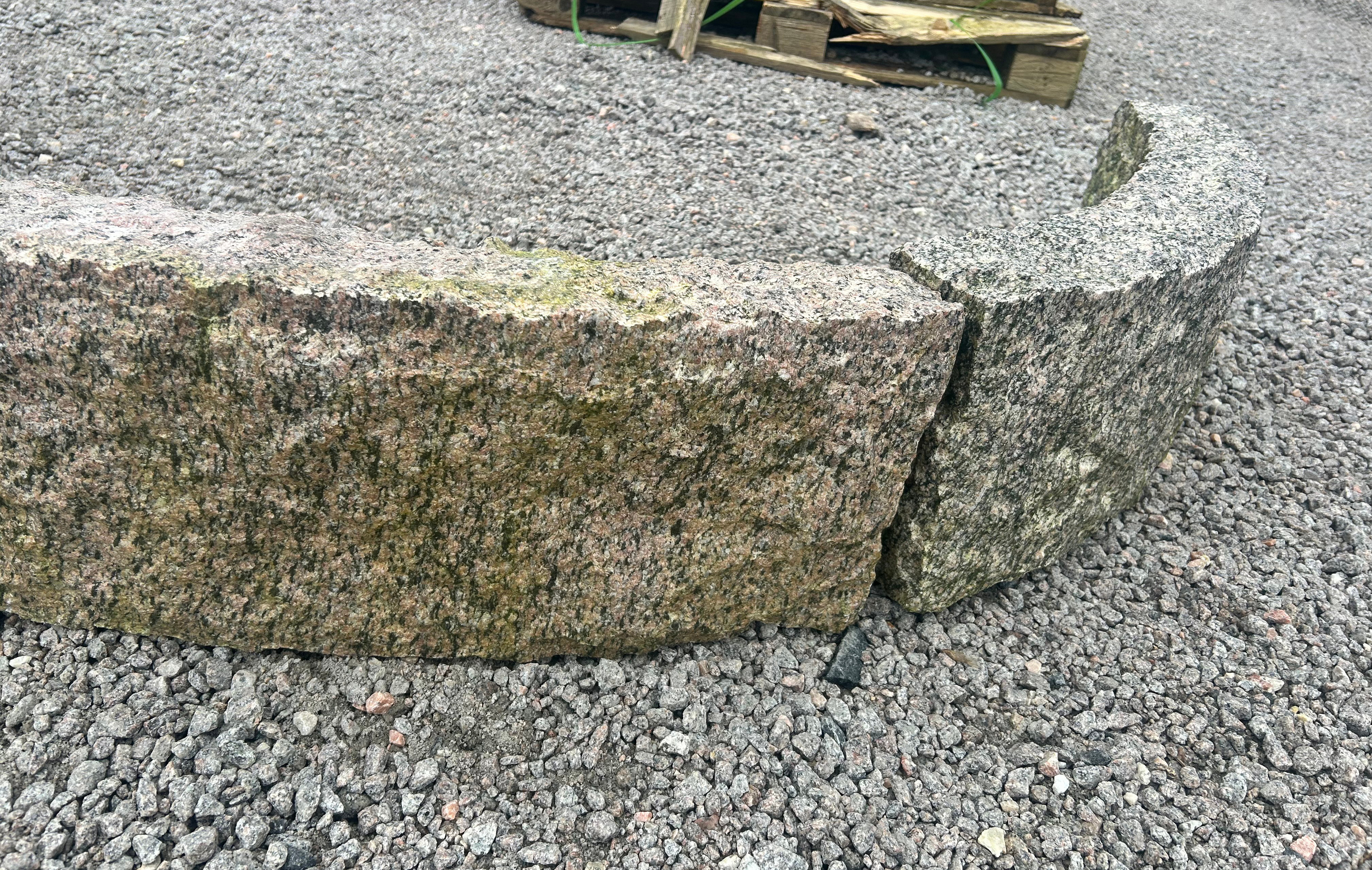 Kantstens trappe i gråsort granit med kløvet overflade.
