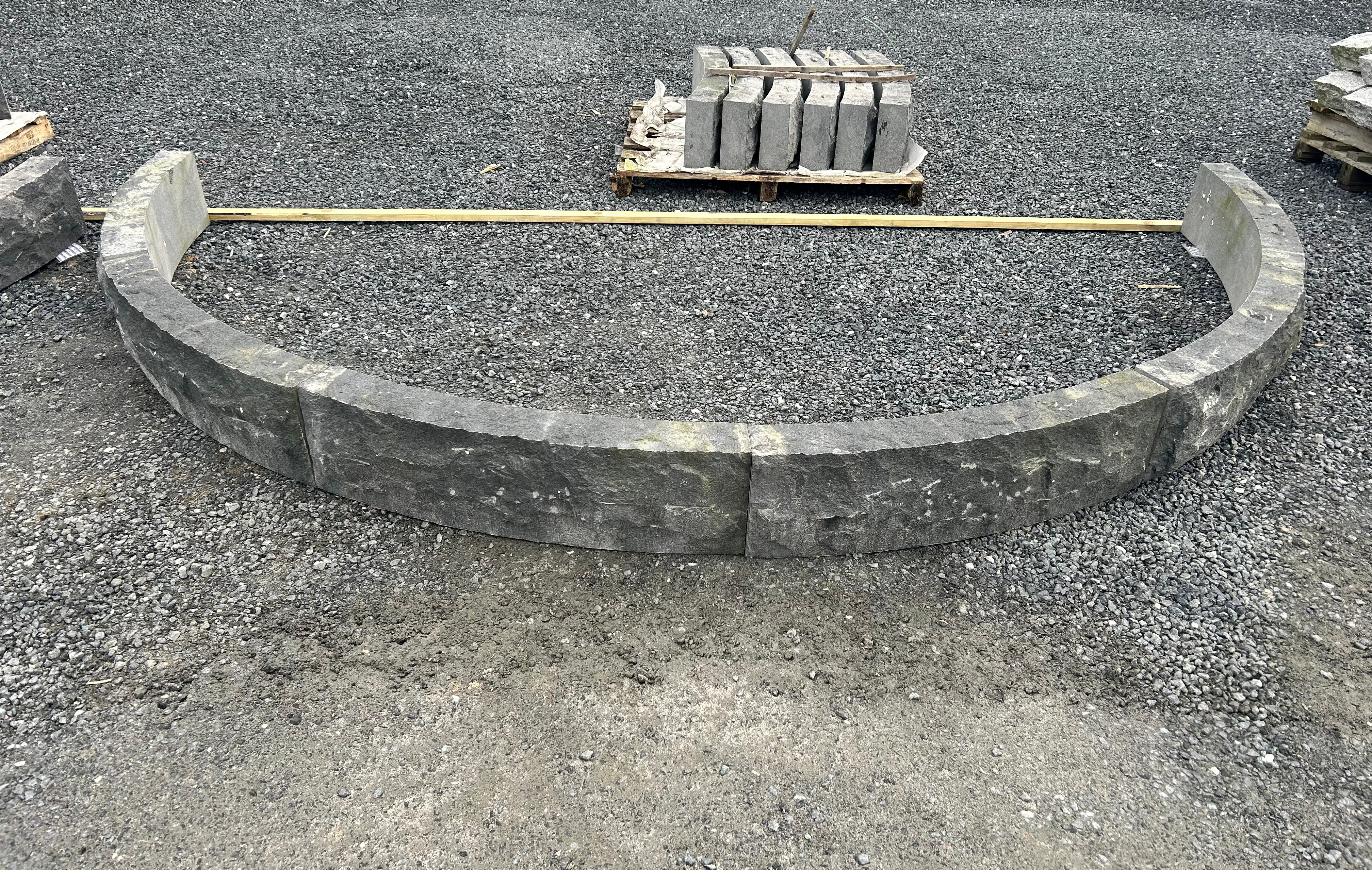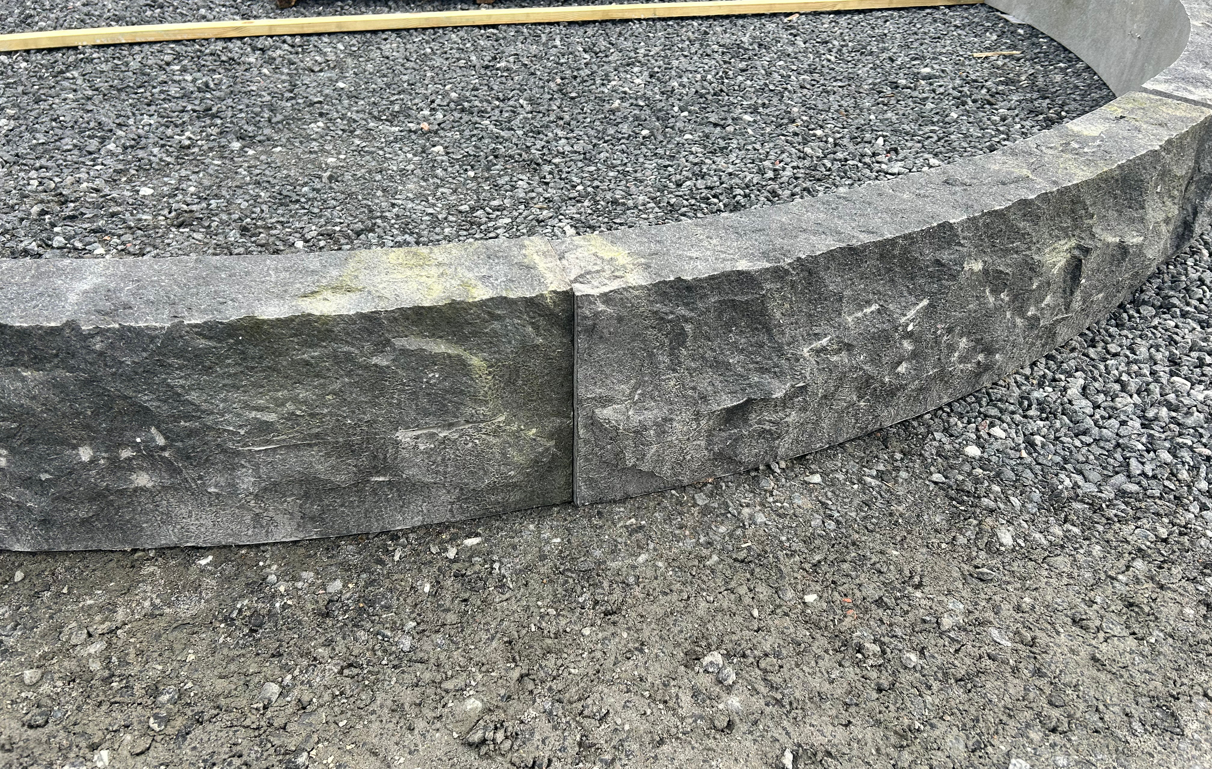 Kantstenstrappe i sort basalt med kløvet overflade.