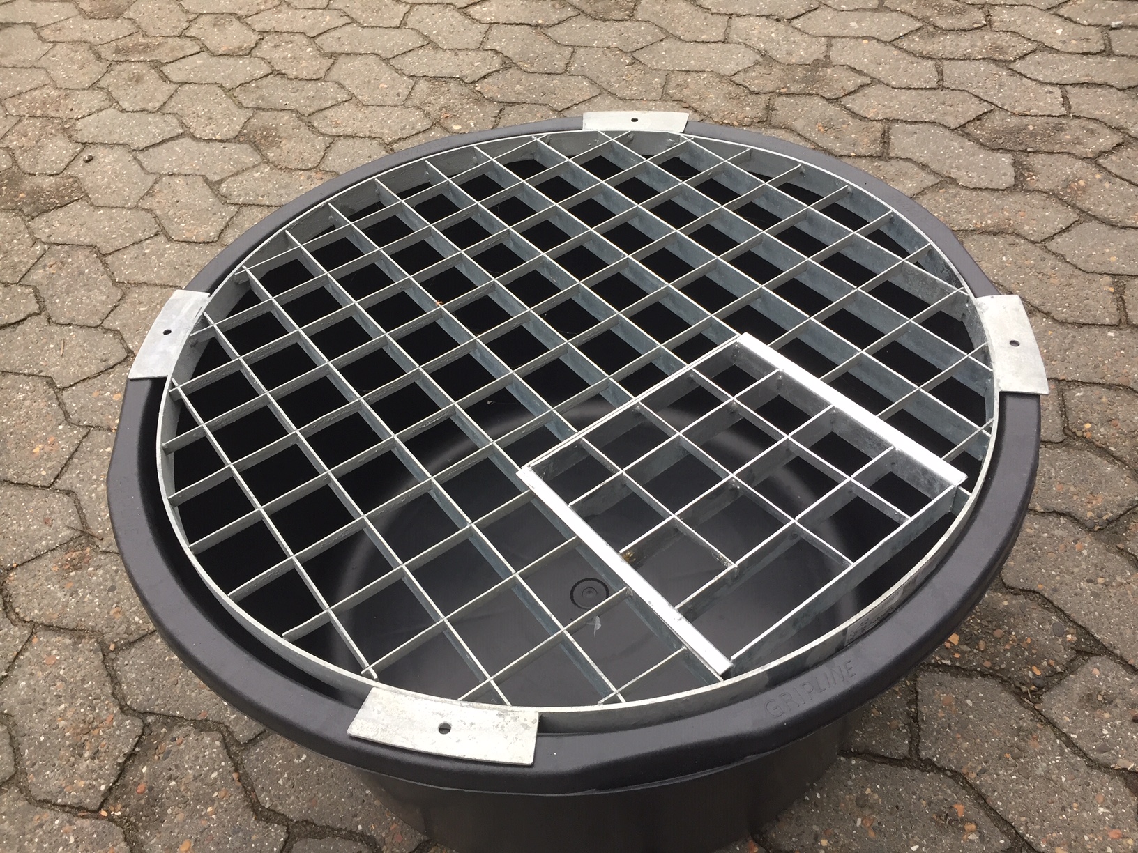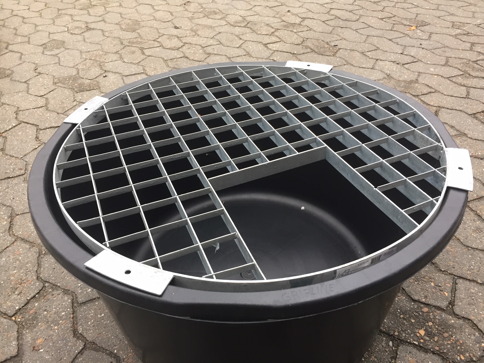 Rundt galvaniseret gitter til vandsten, bruges til 90 Liters murerbalje med indvendig diameter på minimum 61 cm. Velegnet til vandsten af større vægt. Det kan være en fordel at brug sten eller lignende omkring baljen for at understøtte den.