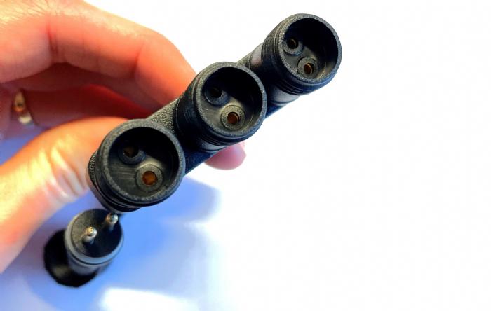 Beregnet til udendørs brug ved for eksempel sammenkobling af LED eller halogenlys.