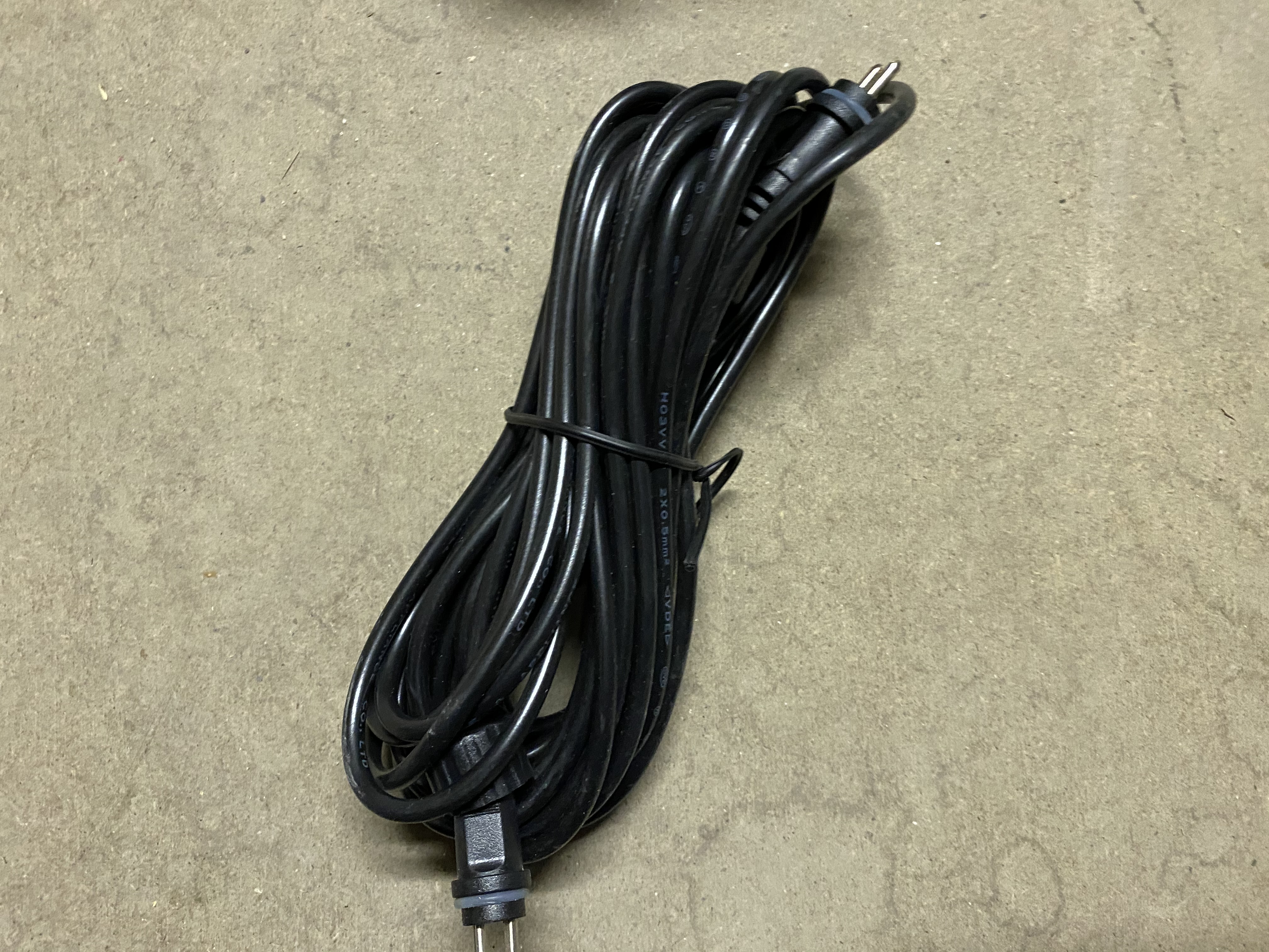 Forlænger kabel med hanstik i hver ende. Forlængerledningen er 7 meter lang. Passer ind i alle pumper og lys.