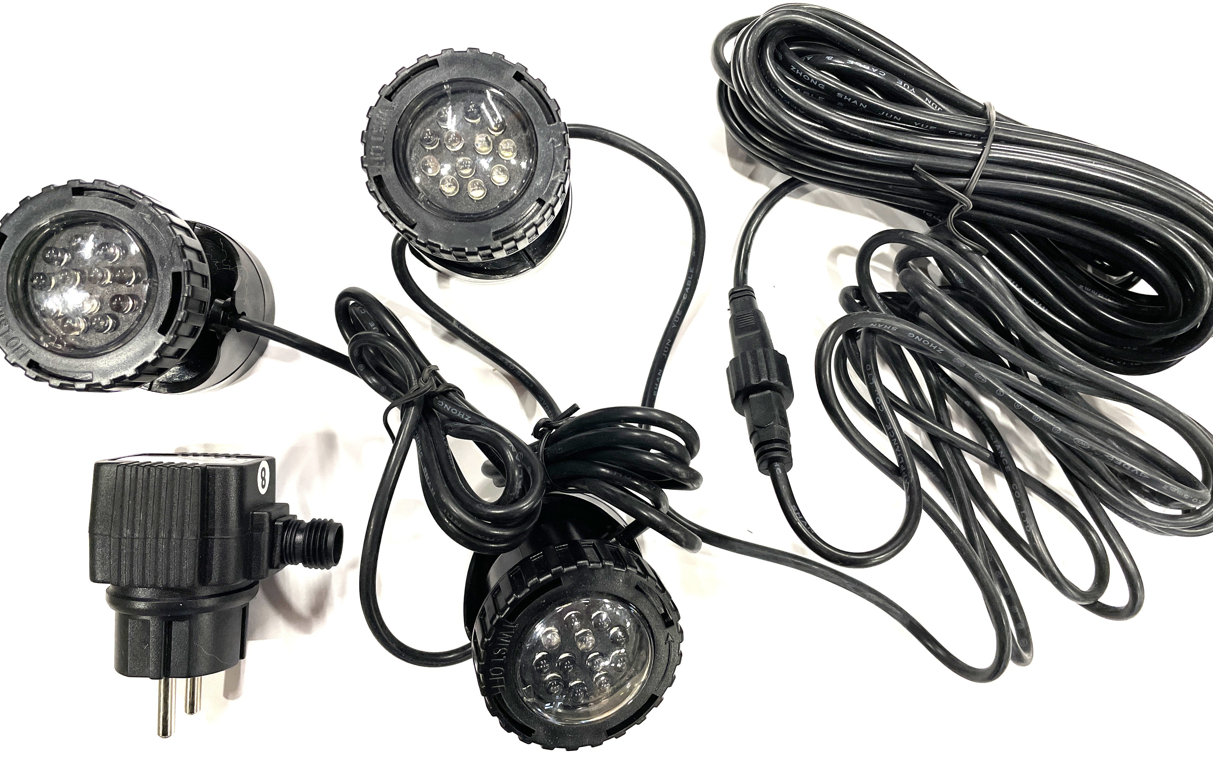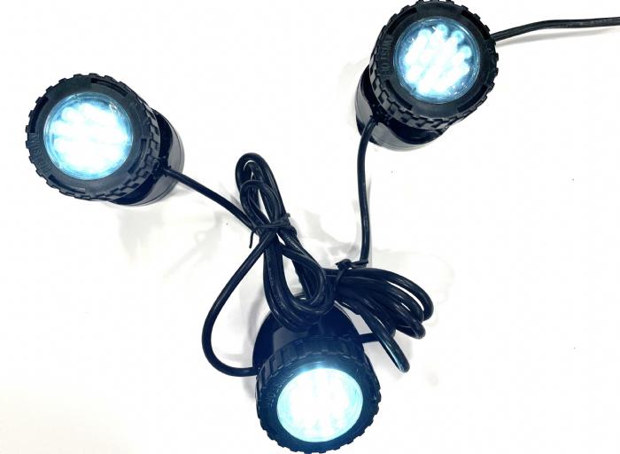 Spotlampesæt til brug i haven. Idéel til brug i forbindelse med vandspil, vandområder eller anden form for vandkunst.