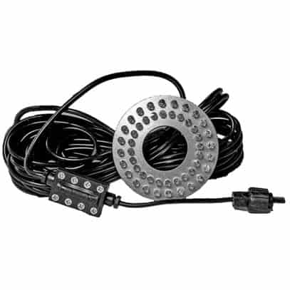 LED ringen placeres på fontænerøret på en pumpe for at belyse fontænen nedefra.