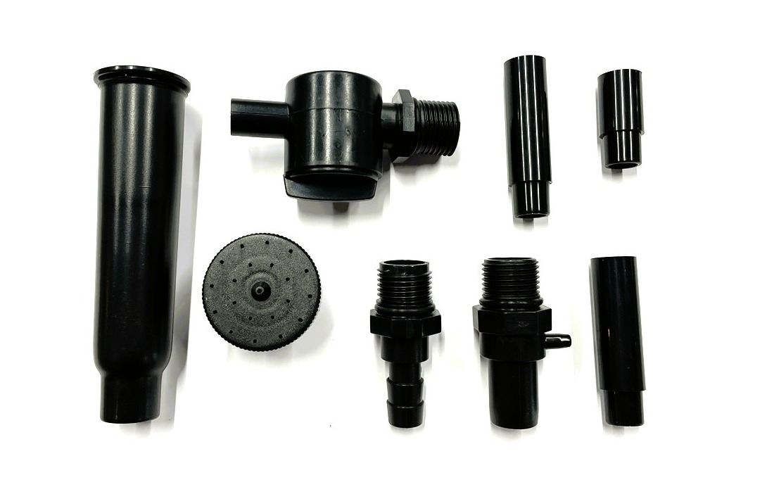 Dysesæt bestående af 8 dele. Sættet giver bl.a. mulighed for fontæne og springvandseffekt samt forlængese af studser og regulering af gennemstrømning af vandet.
