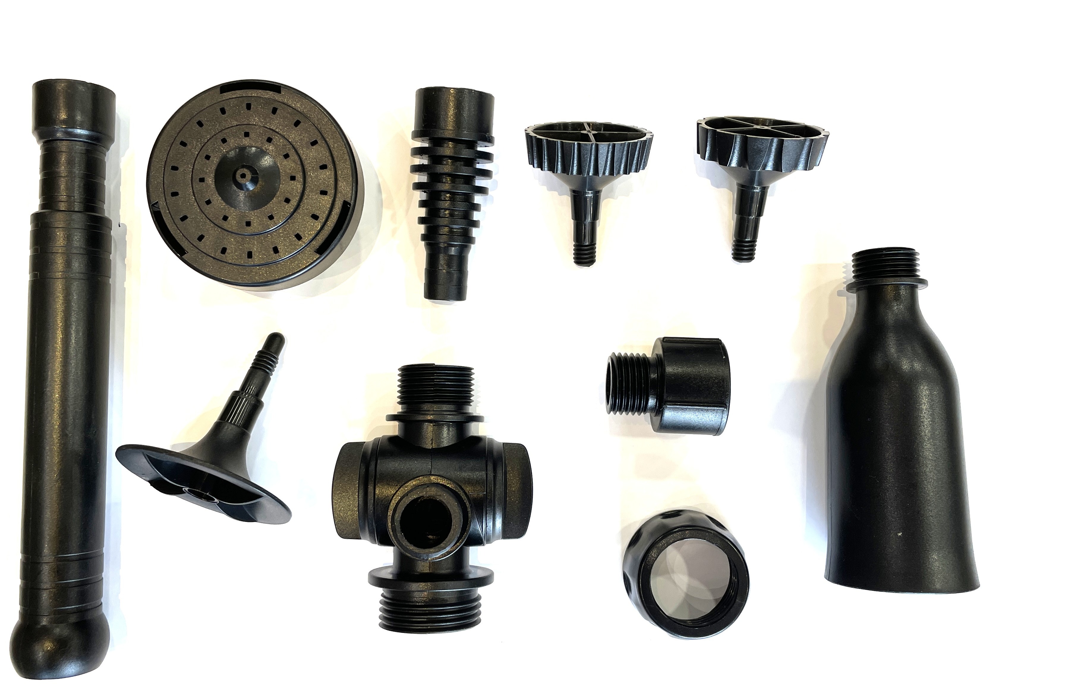 Fontænesæt i sort plast med 1/2″ gevind og to medfølgende dyser.
