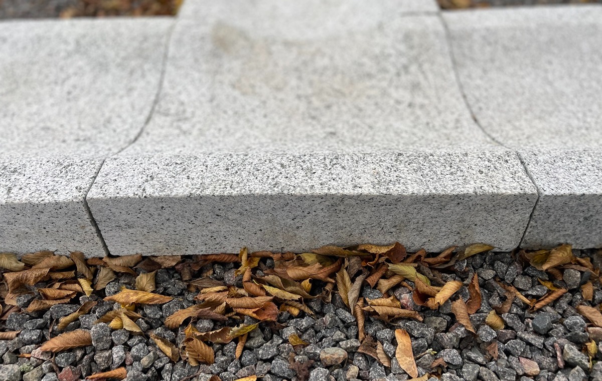Vandrende i grå indisk granit. Denne vandrende er et T-stykke, og har til formål at skabe flere udgange til lige stykker af vandrender. En vandrende har mange formål og anvendes ofte som et dekorativt element i haver, parker og offentlige områder.