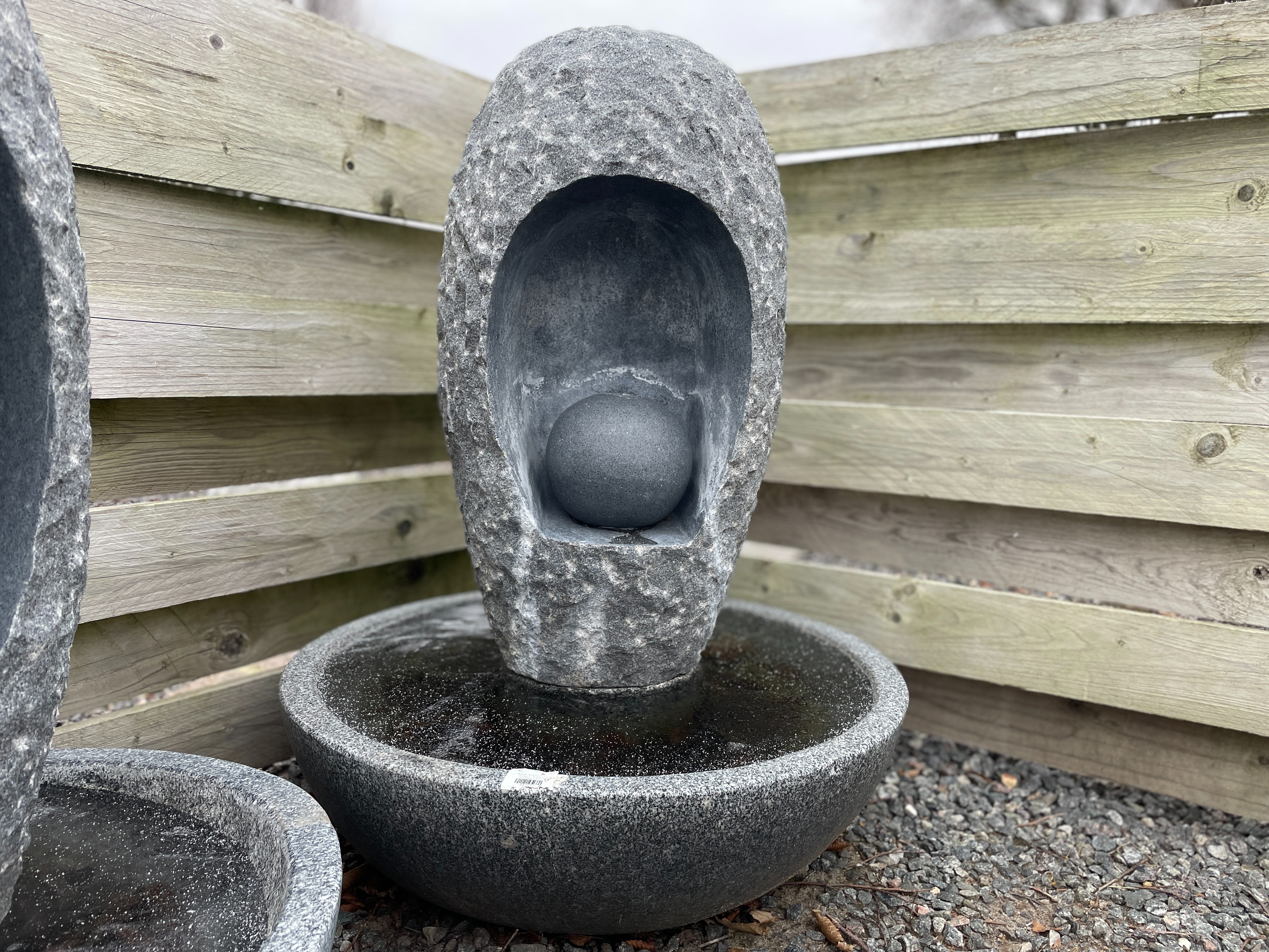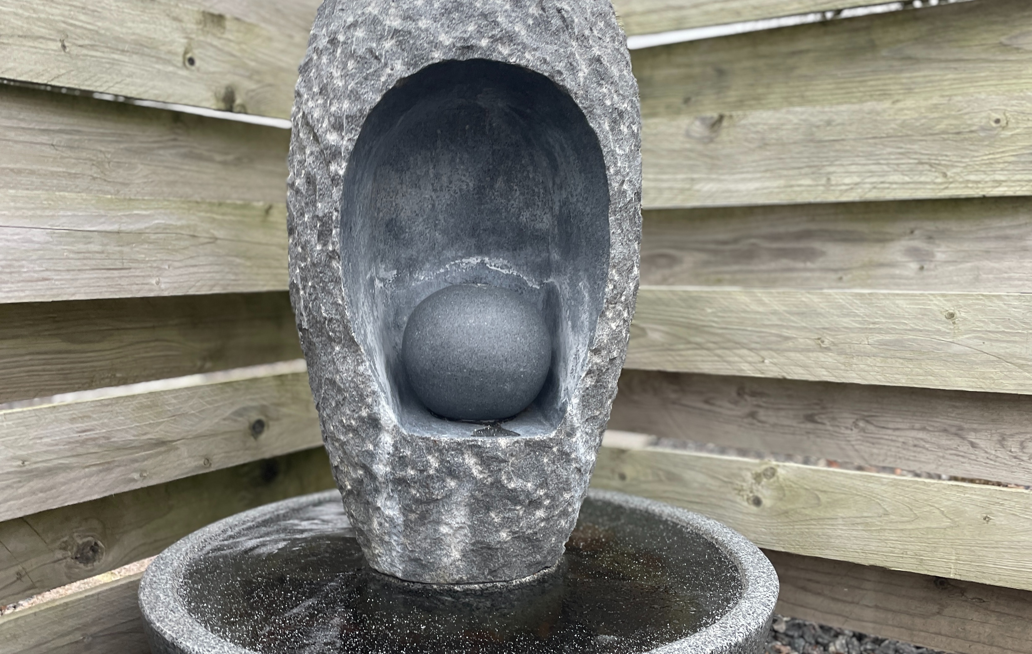 - 1 kugle i granit, med hul til vandslangen (vandet kommer ud i toppen af kuglen)