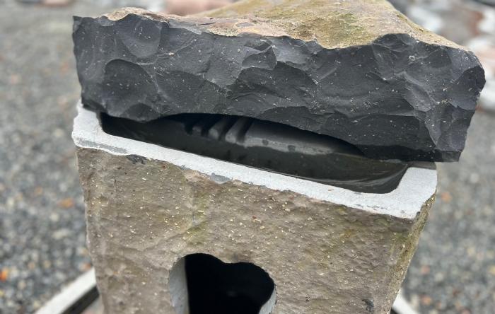 Vandreservoir Grotte i sort basalt, komplet med tilbehør. Vandet står og drybber i grotten og skaber en hyggelig effekt.